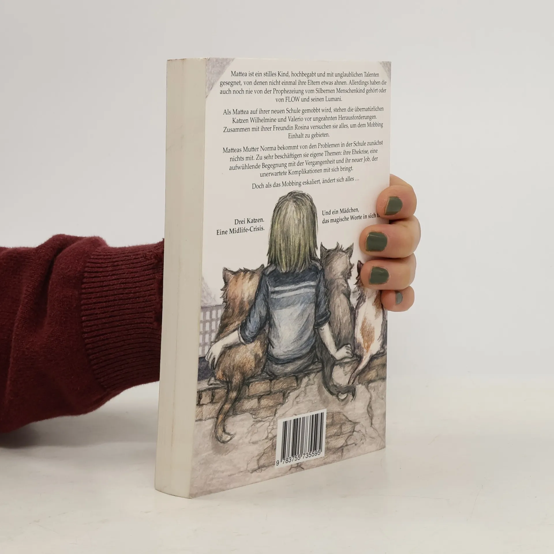 Drei Katzen. Eine Midlife-Crisis. Und ein Mädchen, das magische Worte in sich trägt. Mattea ist der zweite Teil der Fantasy-Dilogie Die Prophezeiung vom Silbernen Menschenkind.Mattea ist ein stilles Kind, hochbegabt und mit unglaublichen Talenten gesegnet, von denen nicht einmal ihre Eltern etwas ahnen. Allerdings haben die auch noch nie von der Prophezeiung vom Silbernen Menschenkind gehört oder von FLOW und seinen Lumani.Als Mattea auf ihrer neuen Schule gemobbt wird, stehen die beiden übernatürlichen Katzen Wilhelmine und Valerio vor ungeahnten Herausforderungen. Zusammen mit ihrer Katzenfreundin Rosina und anderen tierischen Verbündeten versuchen sie alles, um dem Mobbing Einhalt zu gebieten.Matteas Mutter Norma bekommt von den Problemen in der Schule zunächst nichts mit. Zu sehr beschäftigen sie eigene ihre Ehekrise, eine aufwühlende Begegnung mit der Vergangenheit und ihr neuer Job, der unerwartete Komplikationen mit sich bringt.Doch als das Mobbing eskaliert, ändert sich alles. Und während Norma erkennt, was wirklich wichtig ist, muss Mattea - genau wie Valerio - lernen, dass es in erster Linie eines braucht, um Großes zu Vertrauen. In das Gute, in andere und vor allem in sich selbst.