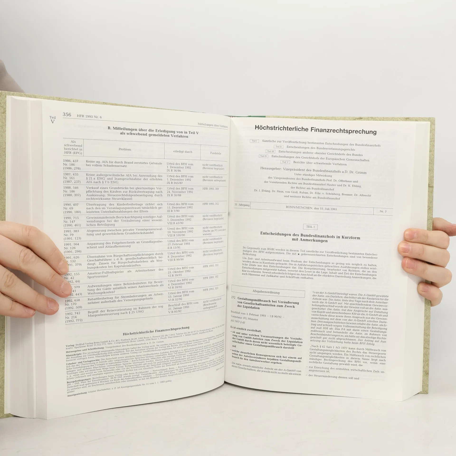 HFR Höchstrichterliche Finanzrechtsprechung Jahresregister 1993, Auteurscollectief