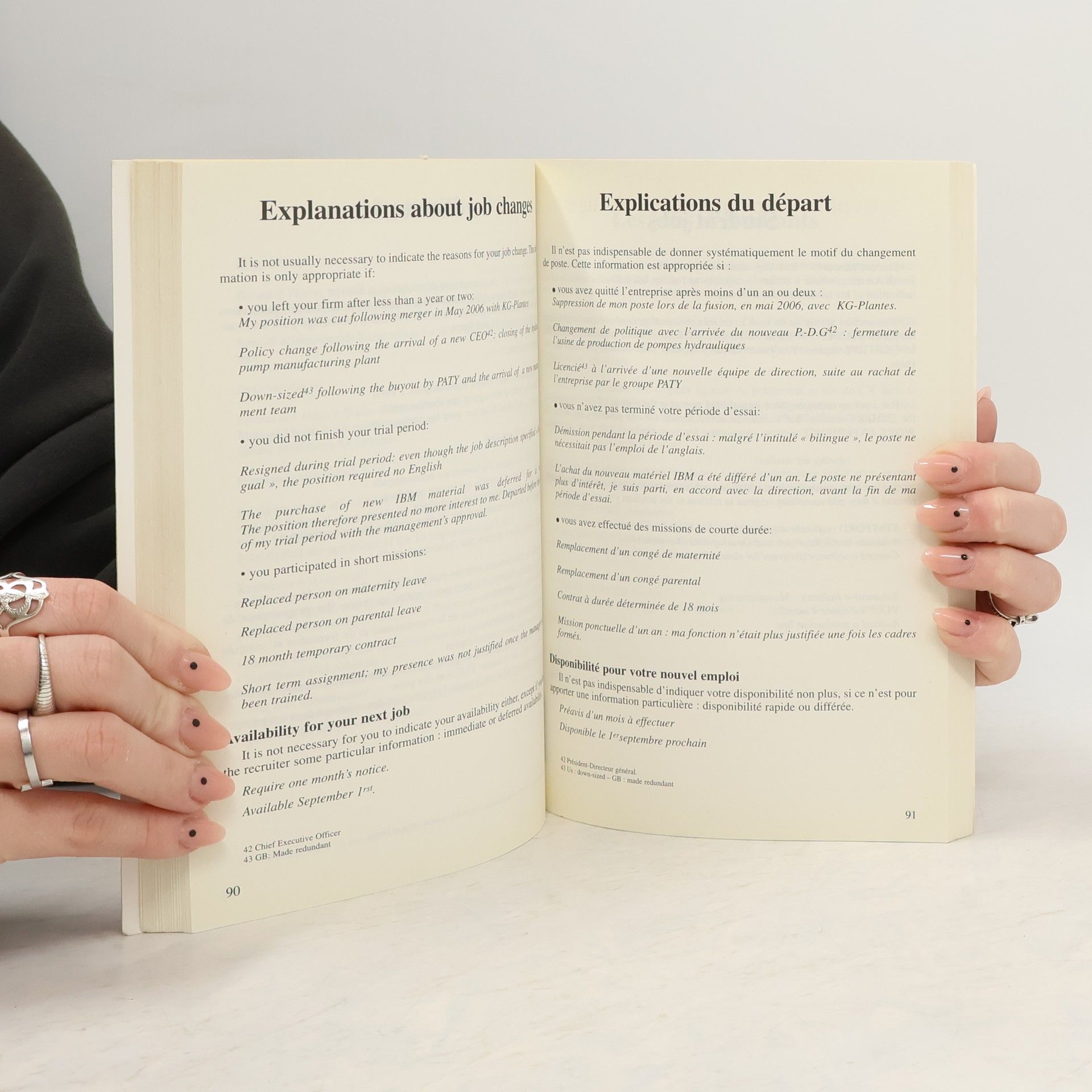 Au moment de votre recherche d'emploi ou de stage, appliquez les règles de communication et de présentation propres à chaque culture pour valoriser votre parcours. Pour vous adresser à un recruteur anglophone, il n'est pas question de faire une simple traduction de votre CV ou de votre lettre de candidature : il faut employer les formes, le vocabulaire et les expressions appropriées et éviter ce qui peut rendre perplexe un recruteur qui reçoit un CV de l'étranger. Ce livre bilingue vous donne une mine de conseils et de nombreux exemples pour employer - en anglais, mais aussi en français - les mots justes et les tournures adéquates, éviter les bévues et les expressions maladroites. Dans cette 3 e édition, actualisée et enrichie, vous trouverez aussi des conseils pour votre recherche d'emploi sur Internet, de nouvelles expressions et descriptions de postes, notamment dans les métiers émergents.