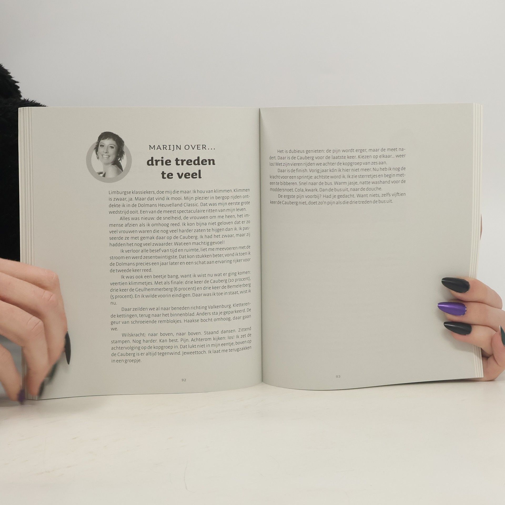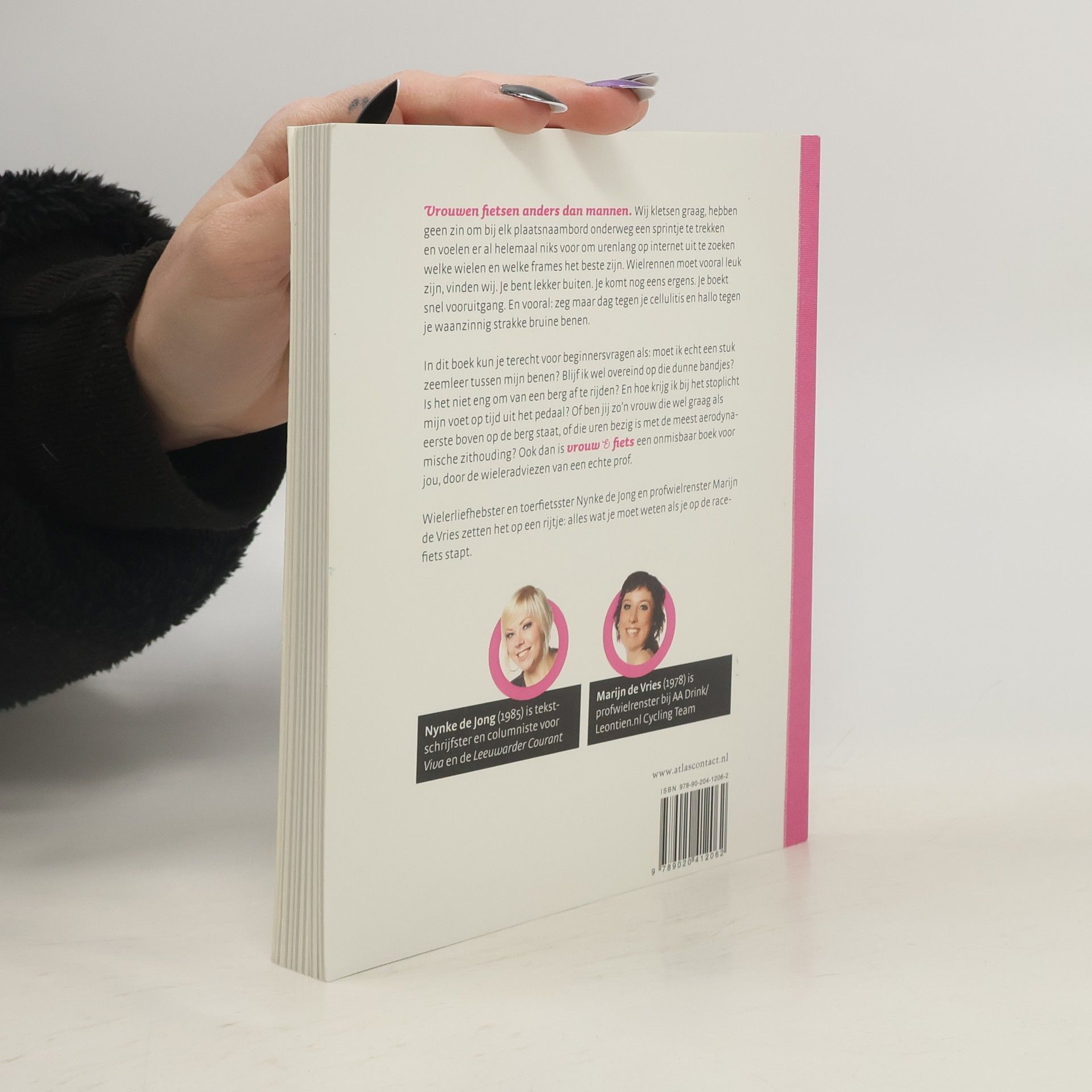 Vrouwen fietsen anders dan mannen. Wij kletsen graag onderweg, hebben geen zin om bij elk plaatsnaambord onderweg een sprintje te trekken en voelen er al helemaal niks voor om urenlang op internetfora uit te zoeken welke wielen en welk frame het beste zijn. Wielrennen moet ook leuk zijn. Je bent buiten, je komt nog eens ergens. En vooral: zeg maar dag tegen je cellulitis en hallo tegen je strakke bruine benen. Steeds meer vrouwen maken de overstap van de sportschool naar de weg. En lopen dan het risico te verdwalen in een door mannen gedomineerde wereld. Reden voor toerfietser Nynke de Jong en profwielrenner Marijn de Vries om alles op een rijtje te zetten. Maar dan anders: van ontbijtkoek onderweg tot het soepel wisselen van een bandje. Van het schoonmaken van je derailleur tot vaseline tussen je schaamlippen. De dames winnen advies in bij professionals als Leontien van Moorsel en Marianne Vos en geven antwoord op de meest uiteenlopende vragen.