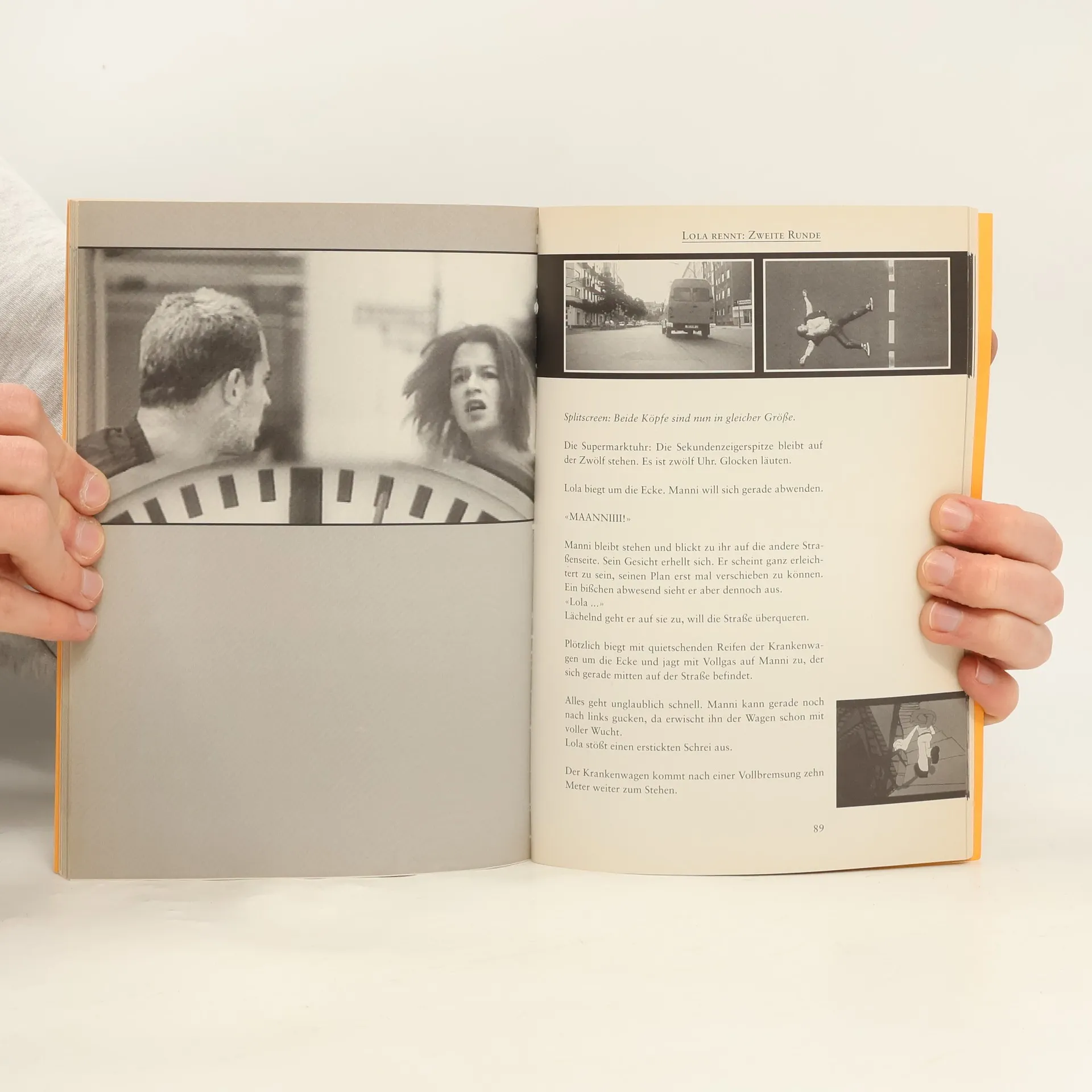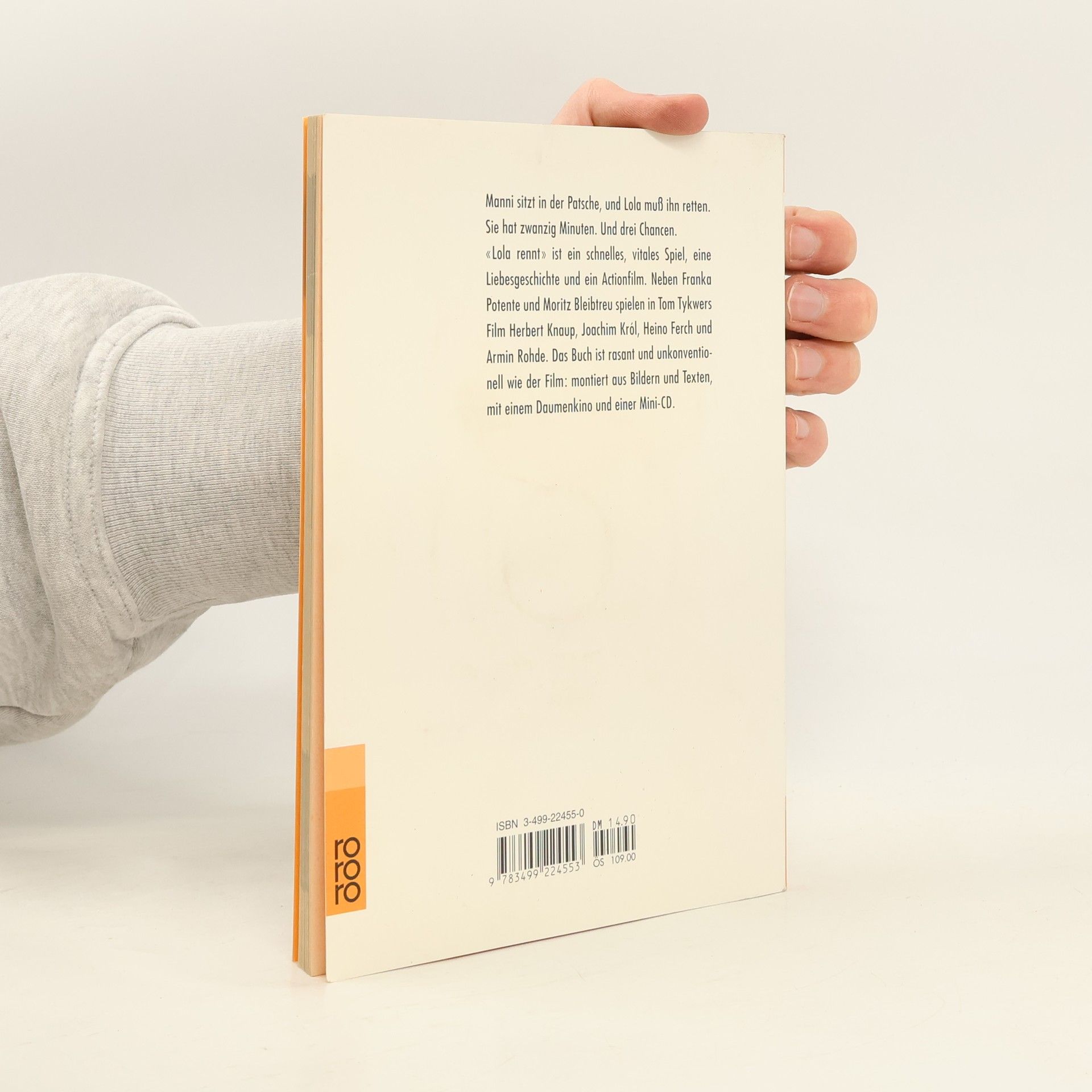 Eigentlich ist alles Lolas Schuld: Weil sie ihren Freund Manni nicht abholen kann, muß dieser mit der U-Bahn fahren ohne Fahrschein. Als dann die Kontrolleure einsteigen, ergreift Manni die Flucht und läßt vor lauter Panik die Plastiktüte mit den hunderttausend Mark zurück ... "Lola rennt" ist ein schnelles, vitales Spiel, eine Liebesgeschichte und ein Actionfilm. Neben Franka Potente und Moritz Bleibtreu spielen in Tom Tykwers Film Herbert Knaup, Joachim Król, Heino Ferch und Arnim Rhode. Das Buch ist rasant und unkonventionell wie der Film: montiert aus Bildern und Texten, mit einem Daumenkino und einer Mini-CD.