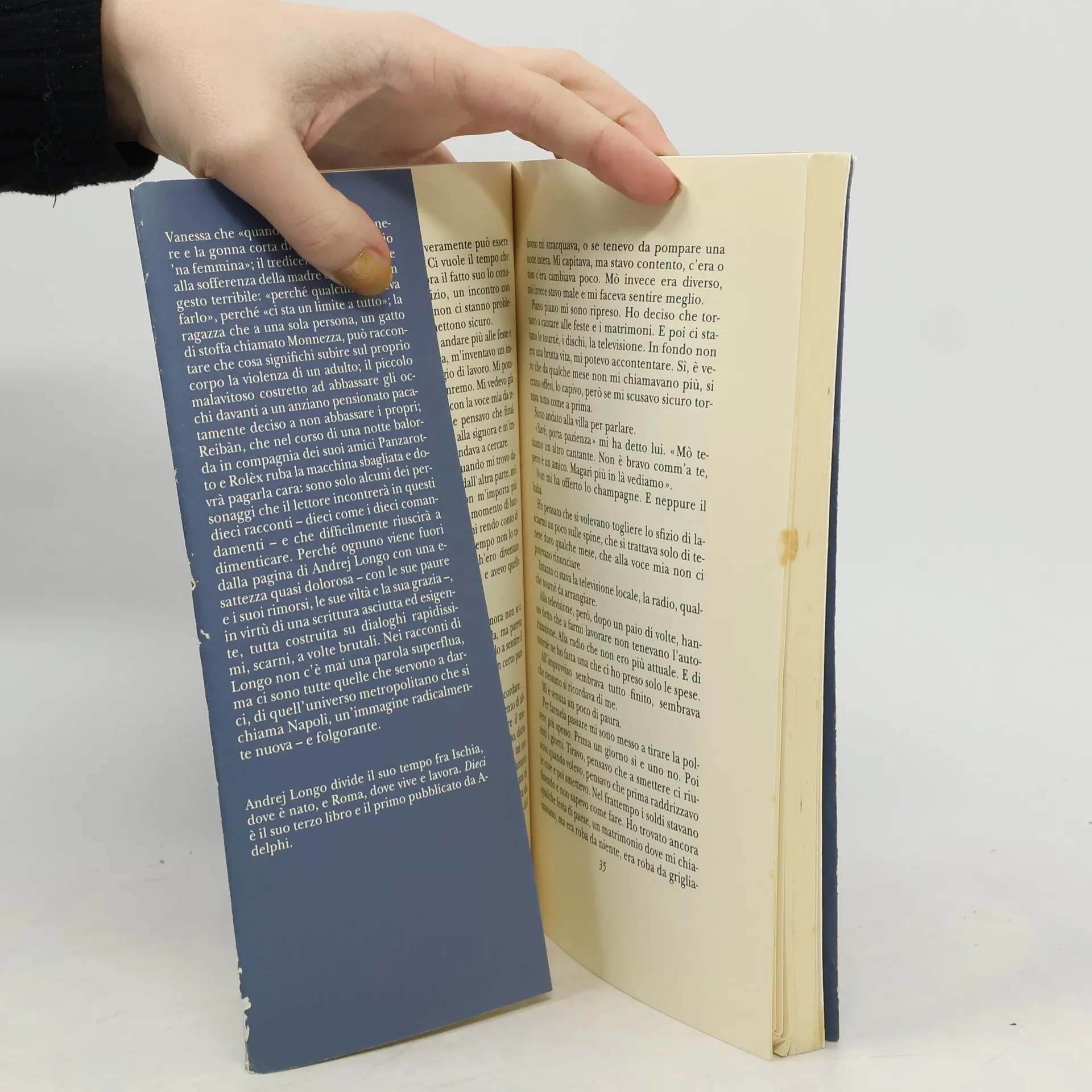 Vanessa che «quando si mette le calze nere e la gonna corta di pelle pare proprio ’na femmina»; il tredicenne che di fronte alla sofferenza della madre è capace di un gesto terribile: «perché qualcuno doveva farlo», perché «ci sta un limite a tutto»; la ragazza che a una sola persona, un gatto di stoffa chiamato Monnezza, può raccontare che cosa significhi subire sul proprio corpo la violenza di un adulto; il piccolo malavitoso costretto ad abbassare gli occhi davanti a un anziano pensionato pacatamente deciso a non abbassare i propri; Reibàn, che nel corso di una notte balorda in compagnia dei suoi amici Panzarotto e Rolèx ruba la macchina sbagliata e dovrà pagarla cara: sono solo alcuni dei personaggi che il lettore incontrerà in questi dieci racconti – dieci come i dieci comandamenti – e che difficilmente riuscirà a dimenticare. Perché ognuno viene fuori dalla pagina di Andrej Longo con una esattezza quasi dolorosa – con le sue paure e i suoi rimorsi, le sue viltà e la sua grazia –, in virtù di una scrittura asciutta ed esigente, tutta costruita su dialoghi rapidissimi, scarni, a volte brutali. Nei racconti di Longo non c’è mai una parola superflua, ma ci sono tutte quelle che servono a darci, di quell’universo metropolitano che si chiama Napoli, un’immagine radicalmente nuova – e folgorante.