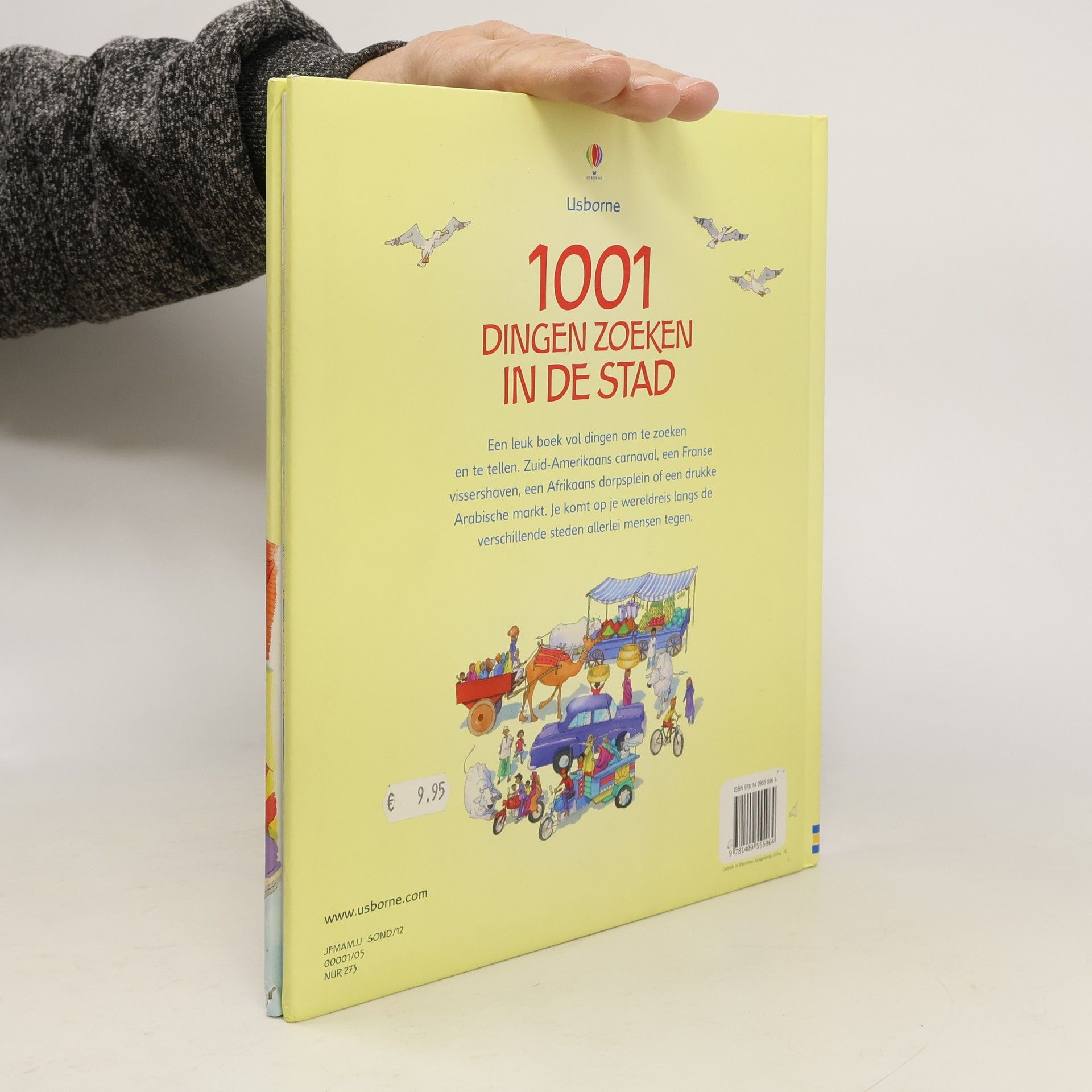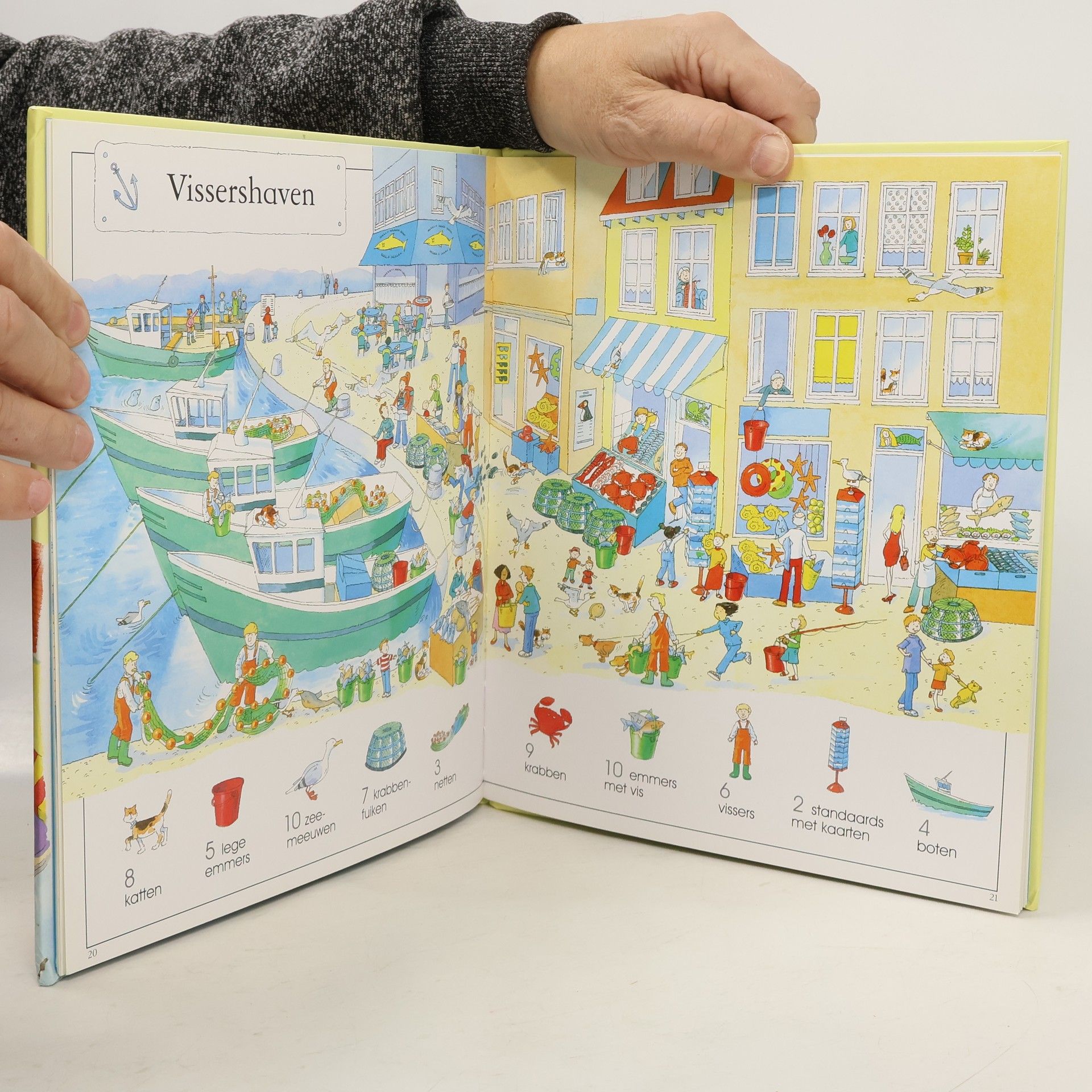 Een leuk boek vol dingen om te zoeken en te tellen. Zuid-Amerikaans carnaval, een Franse vissershaven, een Afrikaans dorpsplein of een drukke Arabische markt. Je komt op je wereldreis langs de verschillende steden allerlei mensen tegen.