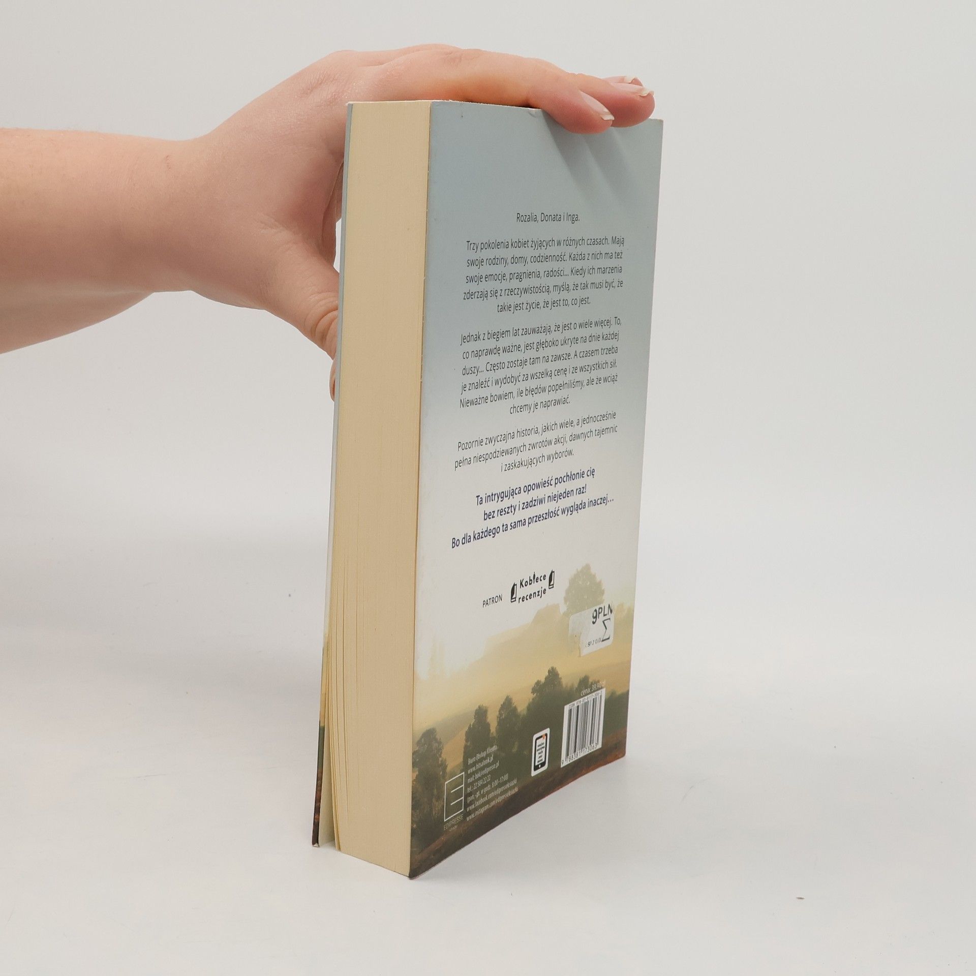 Rozalia, Donata i Inga. Trzy pokolenia kobiet żyjących w różnych czasach. Mają swoje rodziny, domy, codzienność. Każda z nich ma też swoje emocje, pragnienia, radości… Kiedy ich marzenia zderzają się z rzeczywistością, myślą, że tak musi być, że takie jest życie, że jest to, co jest. Jednak z biegiem lat zauważają, że jest o wiele więcej. To, co naprawdę ważne, jest głęboko ukryte na dnie każdej duszy… Często zostaje tam na zawsze. A czasem trzeba je znaleźć i wydobyć za wszelką cenę i ze wszystkich sił. Nieważne bowiem, ile błędów popełniliśmy, ale że wciąż chcemy je naprawiać. Pozornie zwyczajna historia, jakich wiele, a jednocześnie pełna niespodziewanych zwrotów akcji, dawnych tajemnic i zaskakujących wyborów. Ta intrygująca opowieść pochłonie cię bez reszty i zadziwi niejeden raz! Bo dla każdego ta sama przeszłość wygląda inaczej…
