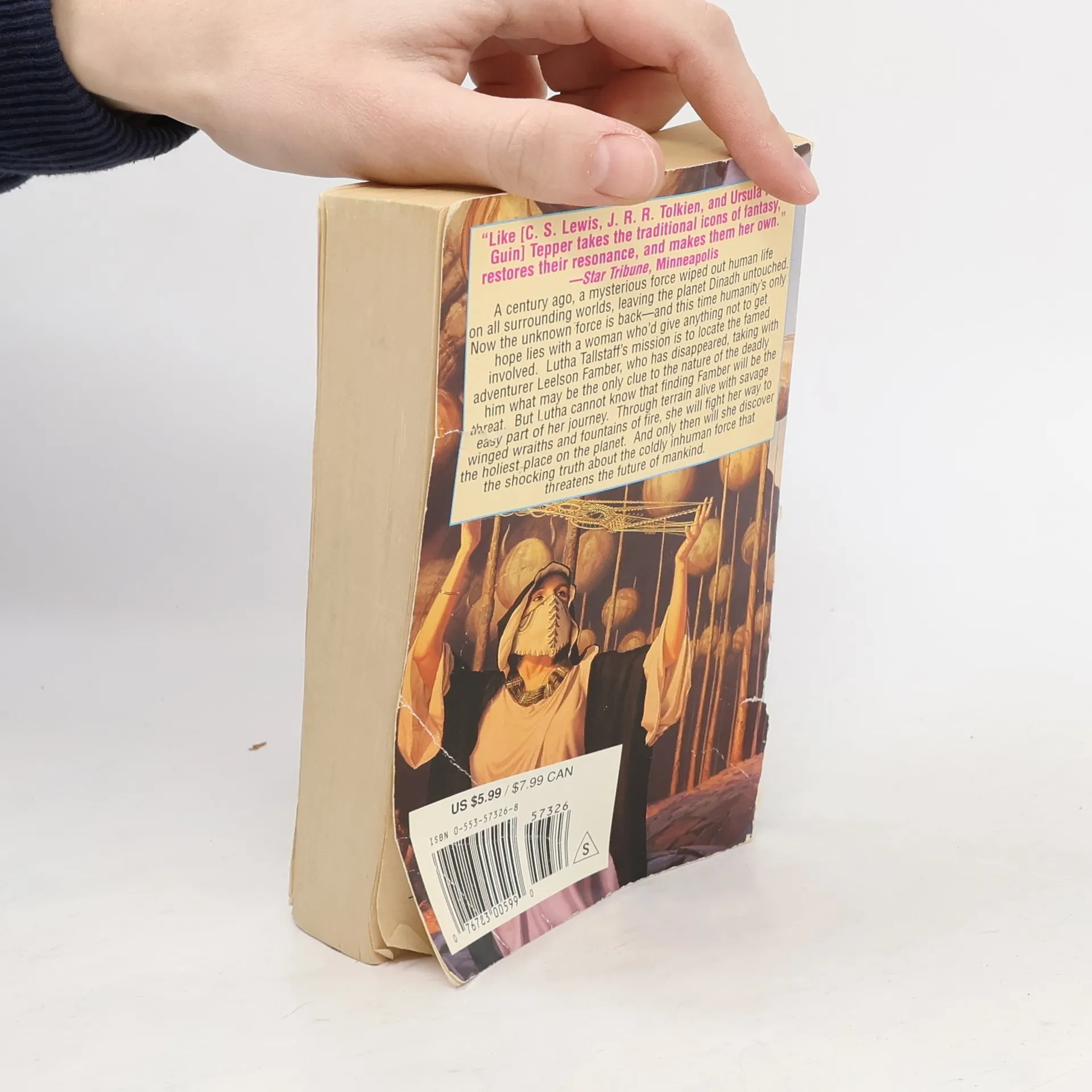 The fragrant, sun-checkered canyon lands of the planet Dinadh seem to be a peaceful backwater of the universe...except for one thing. A century ago, a mysterious force wiped out human life on all surrounding worlds, leaving Dinadh untouched. Every team sent to investigate vanished. Every attempt to contact survivors met with a devastating silence. Now the unknown force is back - and this time humanity's only hope for survival lies on Dinadh...with a woman who'd give anything not to get involved. Lutha Tallstaff is a brilliant linguist, a devoted mother, and a reluctant emissary to Dinadh. Her mission is to locate the famed adventurer Leelson Famber, who has disappeared, taking with him what may be the only clue to the nature of the deadly threat. But for Lutha, finding Famber, who also happens to be her estranged lover and the father of her child, is the last thing she wants to do. At Lutha's side on this perilous quest is her strange and beautiful young son, a boy whose father denies his humanity but whose bizarre abilities will soon have far-reaching consequences. Reunited on Dinadh, the threesome find themselves traversing a planet dazzling in its cool springs and blossoming fruit trees, dangerous in its fountains of fire and rapacious winged wraiths. Yet only when they approach the planet's holiest place will Lutha discover the truth about her child, about the savage Ularians, and about the future of humankind. For she, her lover, and their son figure in a pattern of cosmic importance that will shake the universe - and their understanding of life, love, good and evil - to its very foundations.