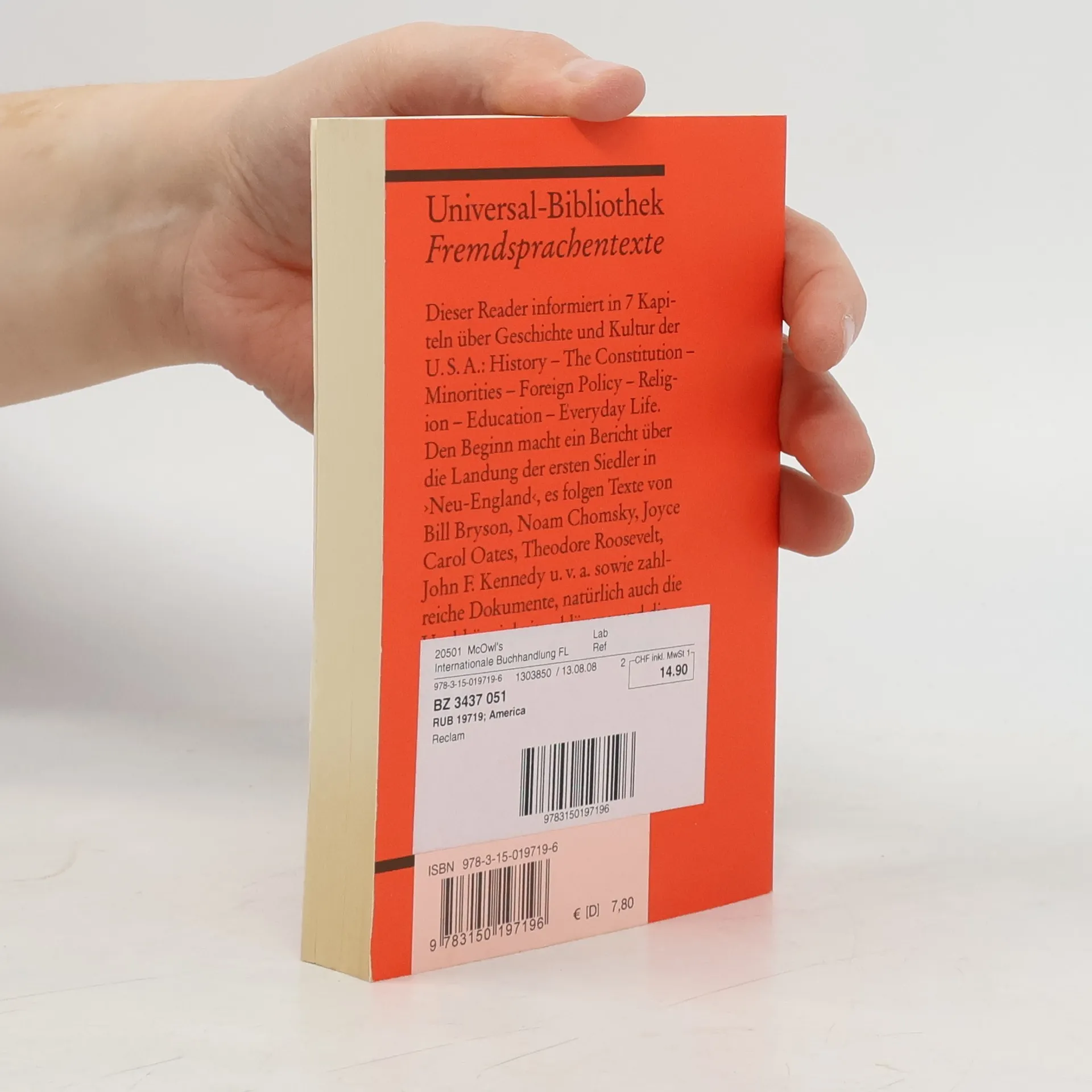 Diese Anthologie über die USA will einen Beitrag leisten, positive wie negative Voreinstellungen zu hinterfragen, Geschichte und Kultur des Landes sowie jüngere Entwicklungen verstehen und beurteilen zu können. Behandelt werden in 7 Kapiteln: History - The Constitution - Minorities - Foreign Policy - Religion - Education - Everyday Life. Texte in der Originalsprache, mit Übersetzungen schwieriger Wörter am Fuß jeder Seite, Nachwort und Literaturhinweisen. Sprachen: Deutsch, Englisch