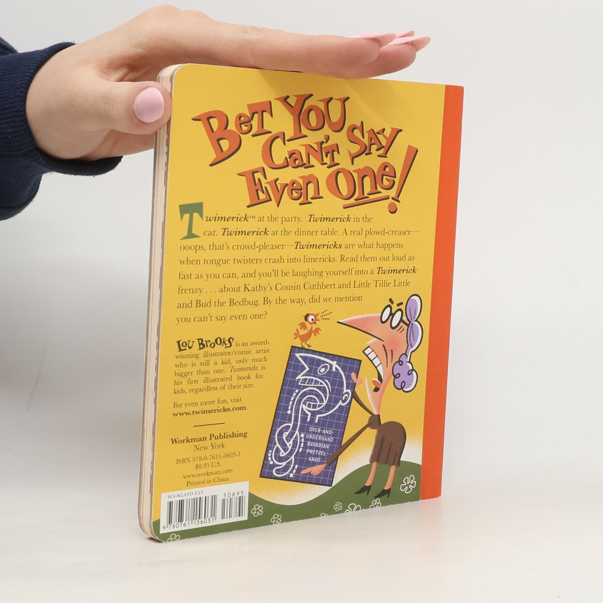 Pure the Twimerick , a fiendish confection of limerick plustongue-twister, topped off by the deliciously whacky illustrations of its inventor, Lou Brooks. To wit (and to be read out loud quickly):A petulant flatulent platypus starts,To tooting and flouting his flute to his farts,But at platypus outings,His flatulent floutings,Flout his flute flat at thetootiest parts.Nonsensical whimsy―or whimsical nonsense―Twimericks are a form of wordplay that are irresistible for kids, as well as for grown-ups unafraid to be silly; perfect to be read at parties or in a classroom when learning poetry (that’s right, who knew poetry could be so much fun?). And the book itself, like the best poetry collections, is a gem offering one Twimerick per page, each illustrated in full-color by the author, a legendary commercial artist. Open to any page and feel the unbridled creative energy spilling out. It's pure happiness.