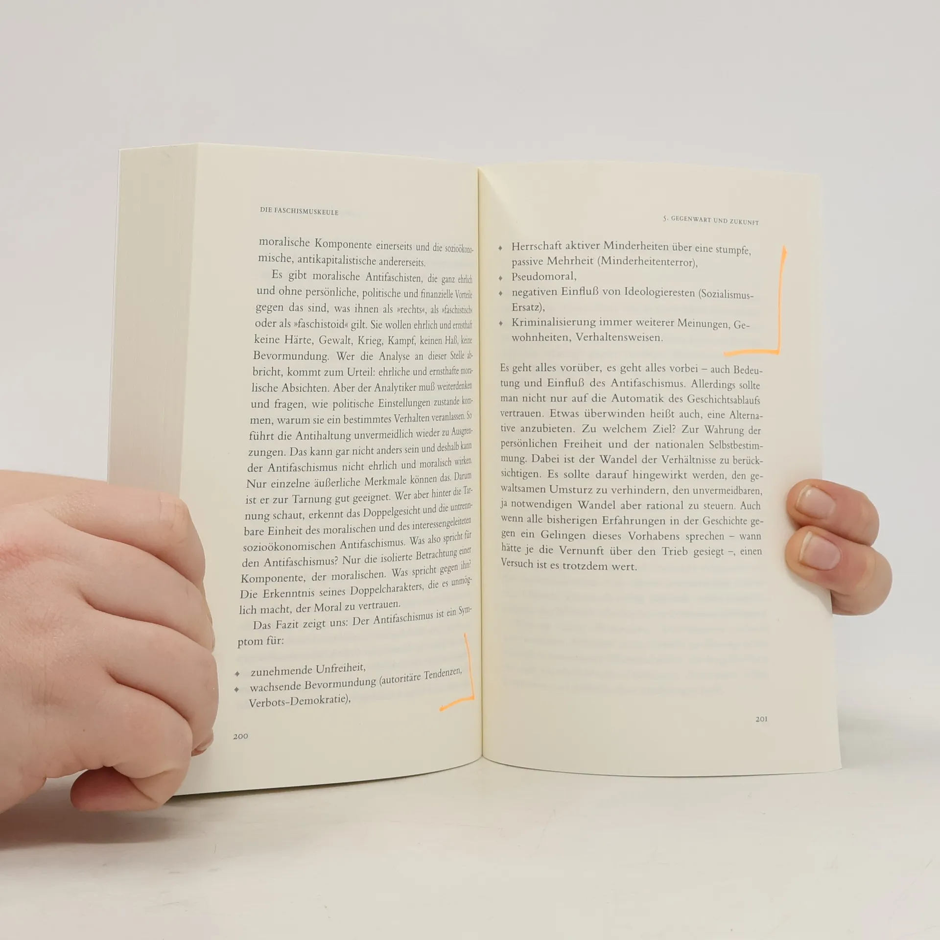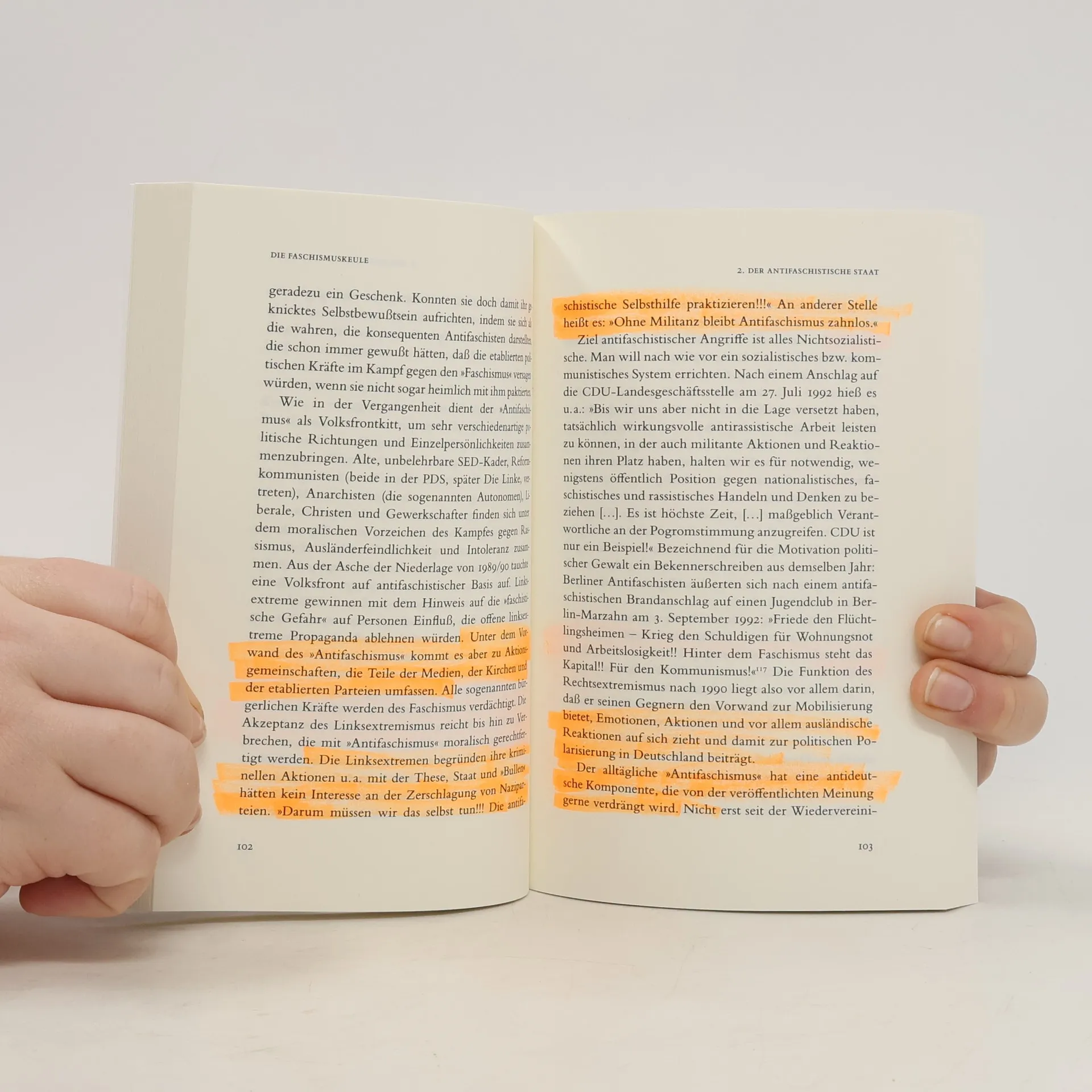 Jeder weiß, was es bedeutet, wenn mit der »Faschismuskeule« gedroht wird, und jeder weiß, was einem blüht, wenn man von ihr getroffen wird. Technisch gesehen handelt es sich um eine rhetorische Figur des Totschlagarguments. Indem man den Gegner in die Nähe des Faschismus rückt, soll dieser diskreditiert und eine sachliche Diskussion seiner Argumente vermieden werden. Das funktioniert, weil ein gesamtgesellschaftlicher Konsens den Antifaschismus zur Doktrin erhoben hat, ohne zu wissen, daß es sich dabei um einen kommunistischen Kampfbegriff handelt, der sich nicht gegen den »Faschismus« richtet, sondern gegen jede Abweichung vom linken Weg.
