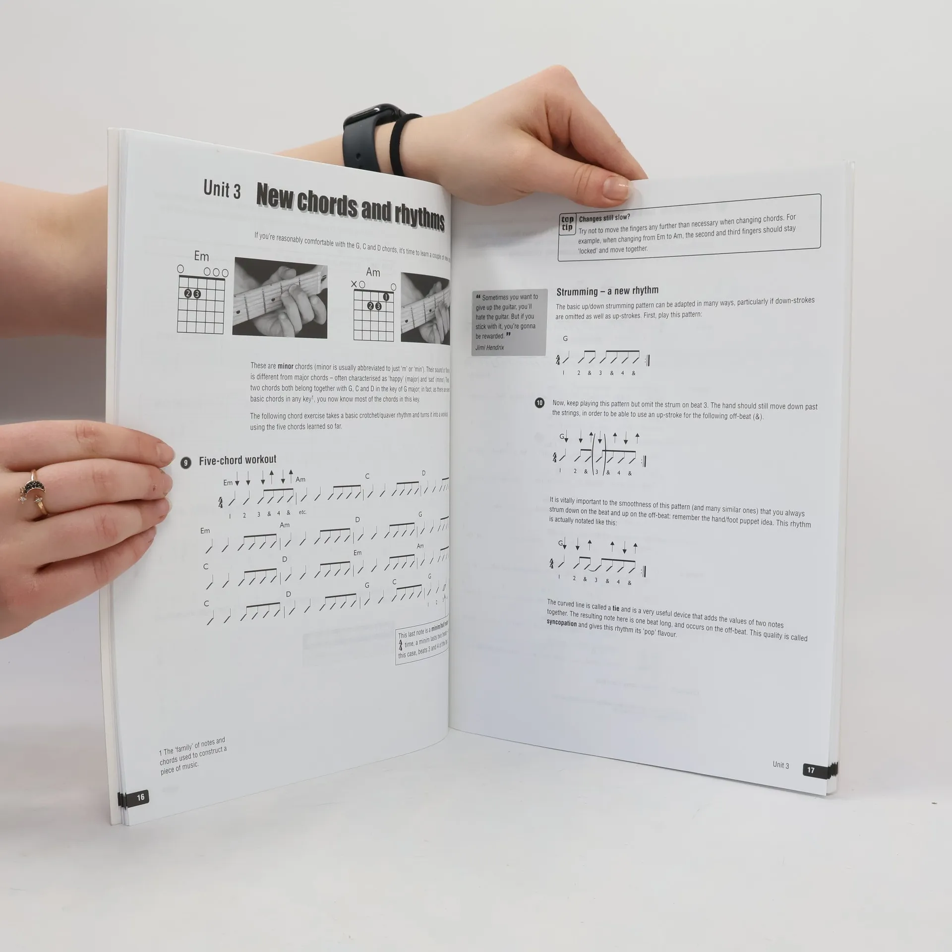 Offers a comprehensive introduction to playing the guitar. Suitable for acoustic or electric guitar, this title features an introduction to TAB and standard notation; guitar techniques including tuning, power chords, barre chords, hammer-ons, string bending, sliding and left-hand damping; and classic songs from legendary artists.