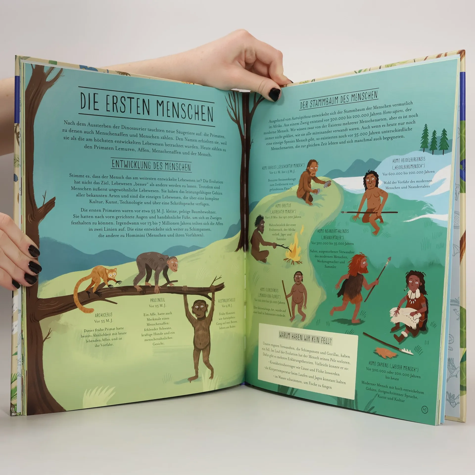 Dieses Buch erforscht die wunderbaren Wege der Evolution von den ersten Bakterien vor 3,5 Milliarden Jahren über Dinosaurier und Säugetiere bis zum modernen Menschen. Warum gibt es Fische, Vögel und Insekten und wie haben sich die Lebewesen über Jahrmillionen immer wieder an ihre Umwelt angepasst? Anna Claybourne und Wesley Robins sind Experten darin, komplizierte Zusammenhänge verblüffend anschaulich darzustellen. Ihr wunderschön gestaltetes Sachbuch fesselt Groß und Klein.