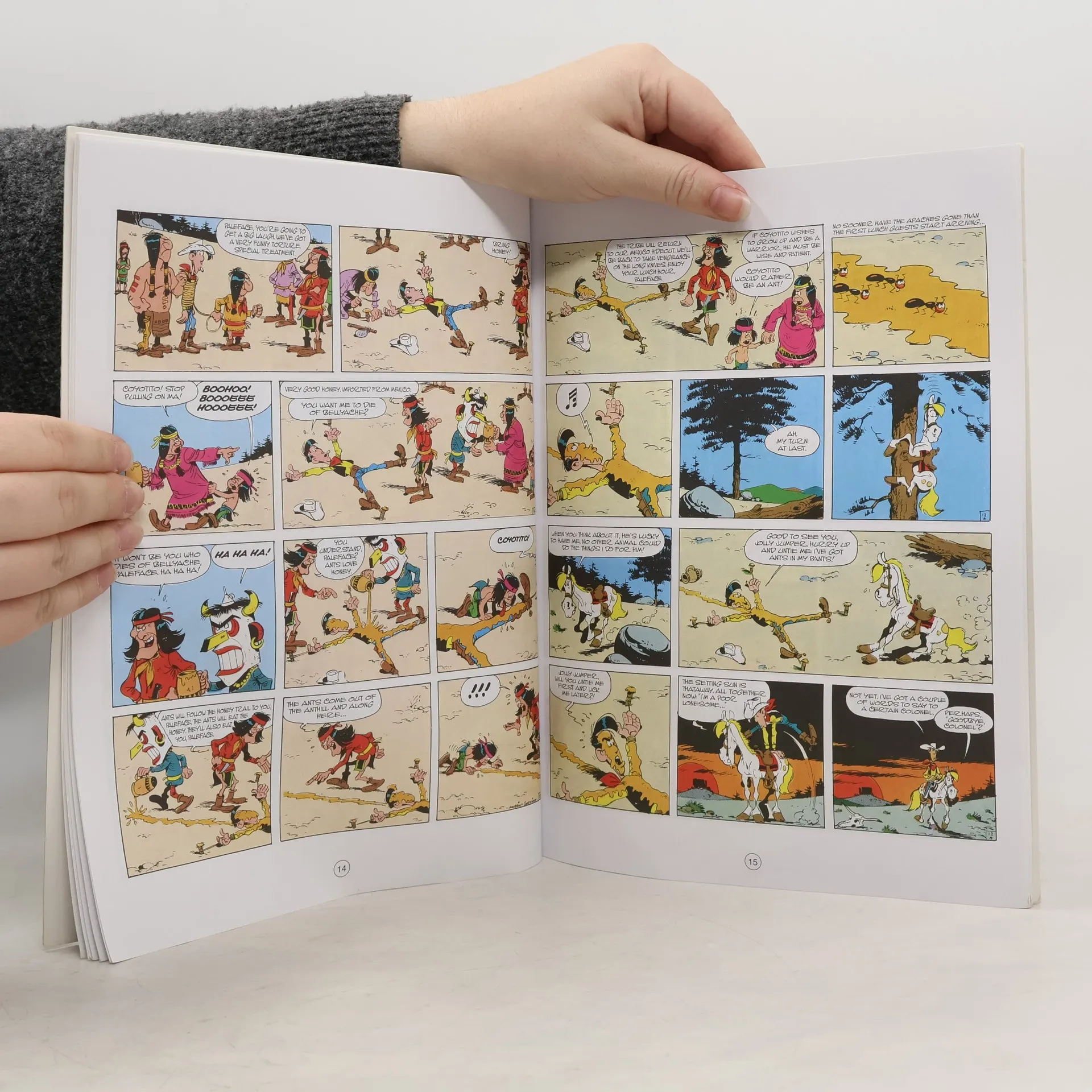 Lucky Luke acts as a peacemaker between an Apache tribe and white settlers. Can he mediate between the two parties and still be trusted by both sides?