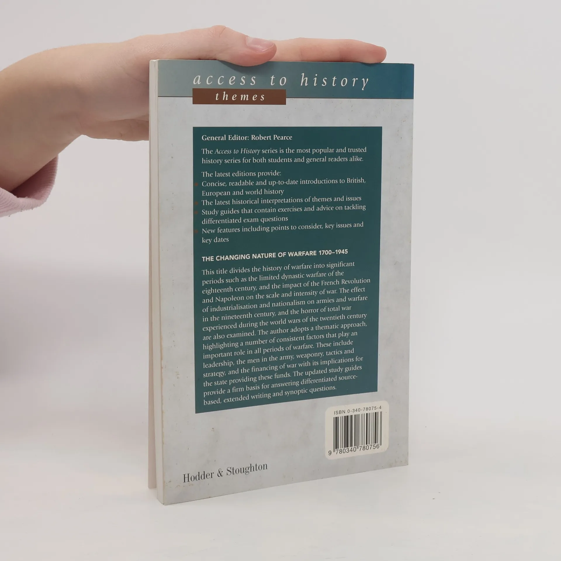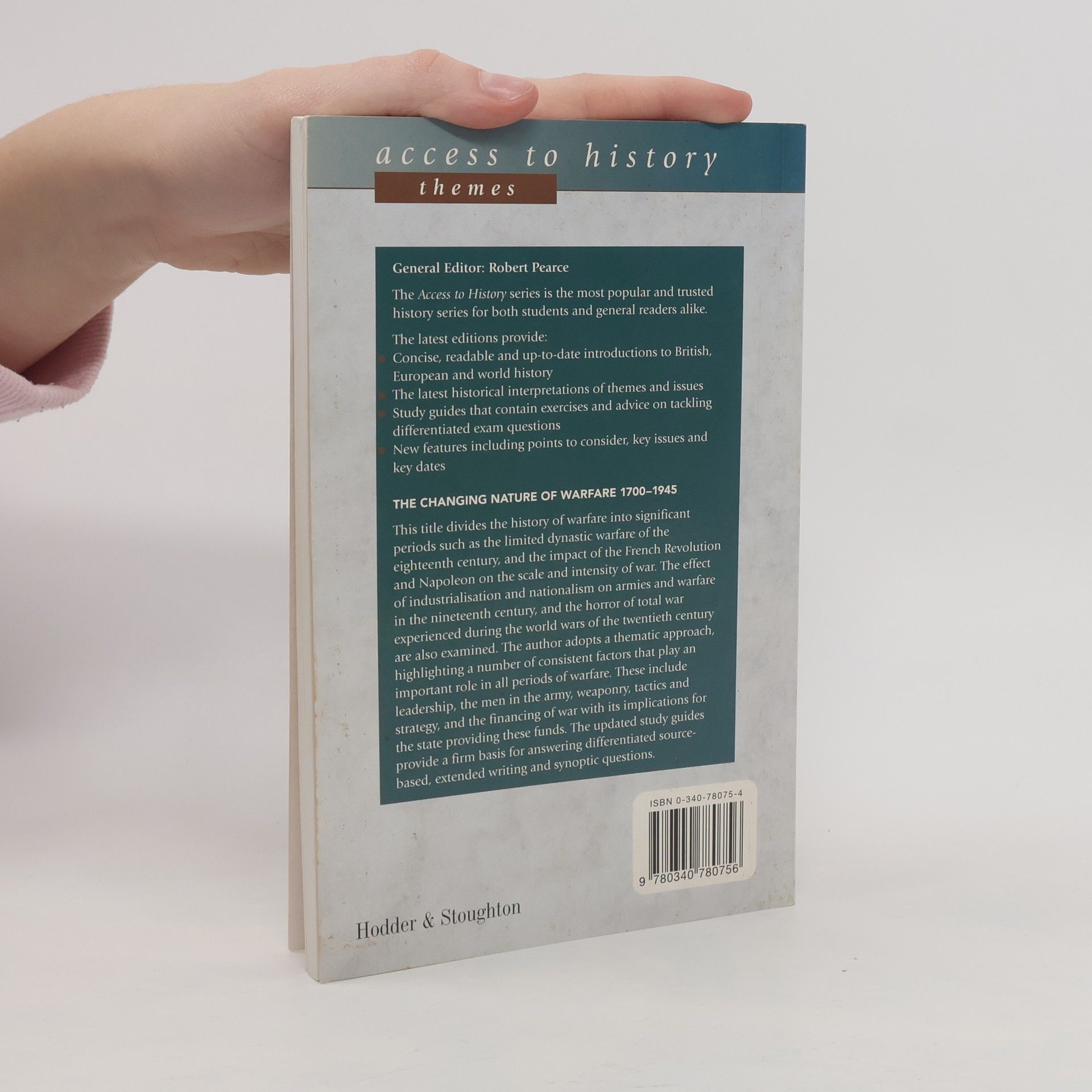 This title provides a stimulating survey of the developments in warfare over the last three centuries. The author adopts a thematic approach, highlighting a number of consistent factors that play an important role in all periods of warfare. These include leadership, the men in the army, weaponry, tactics and strategy, and the financing of war.