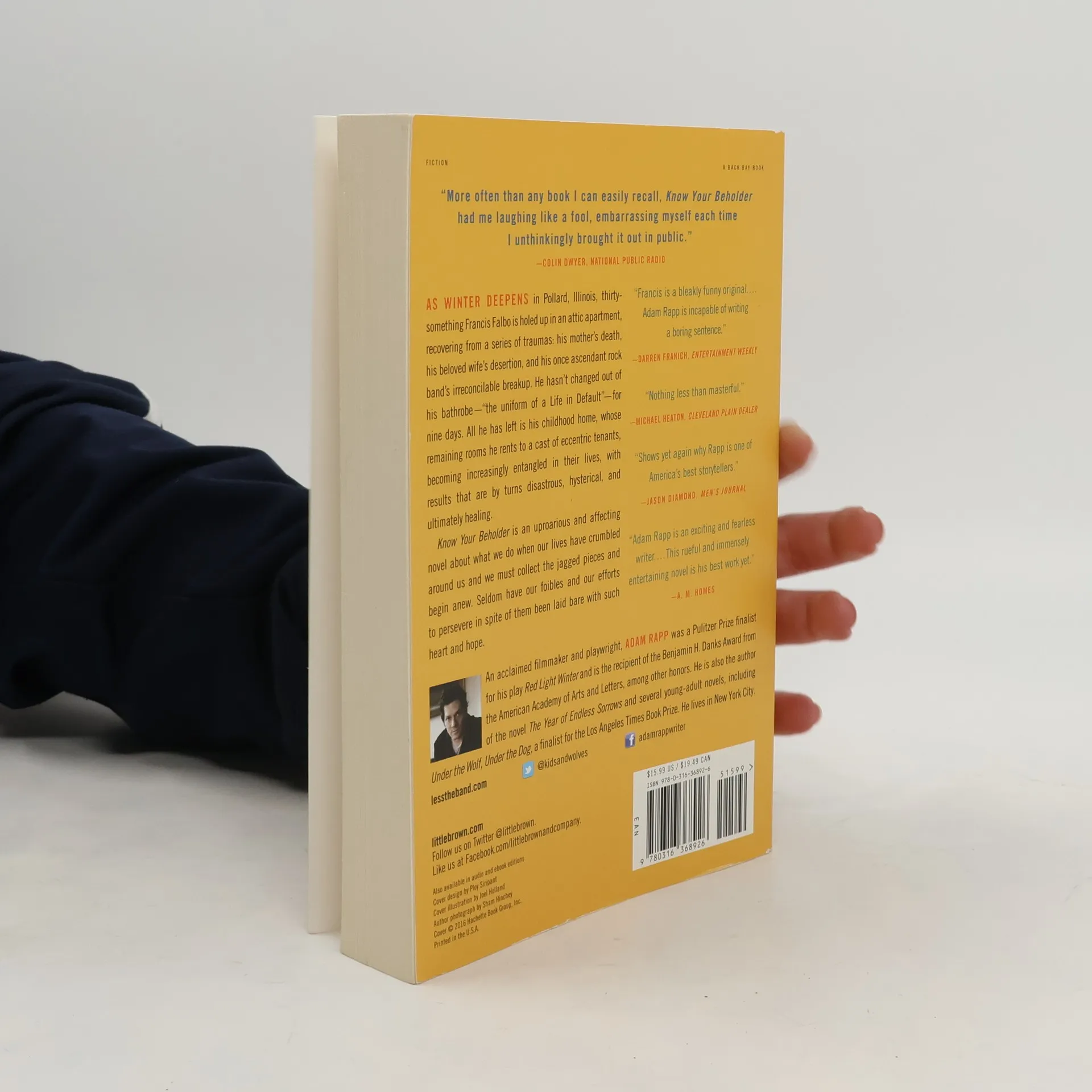 <strong>From a Pulitzer Prize finalist comes a hilarious and heartbreaking novel about a musician climbing back from rock bottom.</strong> As winter deepens in snowbound Pollard, Illinois, thirty-something Francis Falbo is holed up in his attic apartment, recovering from a series of traumas: his mother's death, his beloved wife's desertion, and his once-ascendant rock band's irreconcilable break-up. Francis hasn't shaved in months, hasn't so much as changed out of his bathrobe-"the uniform of a Life in Default"-for nine days. Other than the agoraphobia that continues to hold him hostage, all he has left is his childhood home, whose remaining rooms he rents to a cast of eccentric tenants, including a pair of former circus performers whose daughter has gone missing. The tight-knit community has already survived a blizzard, but there is more danger in store for the citizens of Pollard before summer arrives. Francis is himself caught up in these troubles as he becomes increasingly entangled in the affairs of others, with results that are by turns disastrous, hysterical, and ultimately healing. Fusing consummate wit with the seriousness attending an adulthood gone awry, Rapp has written an uproarious and affecting novel about what we do and where we go when our lives have crumbled around us. Sharp-edged but tenderhearted, <i>Know Your Beholder</i> introduces us to one of the most lovably flawed characters in recent fiction, a man at last able to collect the jagged pieces of his dreams and begin anew, in both life and love. Seldom have our foibles and our efforts to persevere in spite of them been laid bare with such heart and hope<i>.</i>
