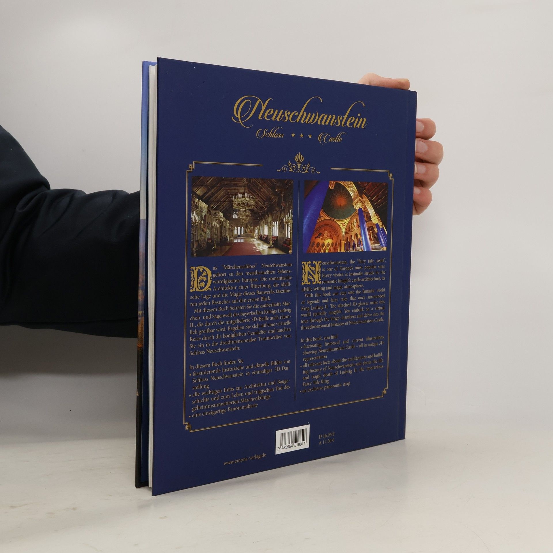 DAS SCHLO SS NEUSCHWANSTEIN ist nicht nur eines der berühmtesten Monumente der Welt, es ist auch eines der schönsten. Kaum jemand kann sich seinem Bann entziehen. Ein magisches Bauwerk: Wer sein Inneres betritt, wähnt sich in einer anderen Welt. Prunk allerorten, aufwendige Wandgemälde, schwere Gobelins, immer wiederkehrende Motive aus der Gralslegende, aus dem Parsifal, Wolfram von Eschenbachs mittelalterlichem Bestseller, verfasst Anfang des 13. Jahrhunderts, »Ideensteinbruch« Richard Wagners und Inspiration von König Ludwig II. Das wunderbar gestaltete Buch bietet einen unvergleichlichen Einblick in die faszinierende Welt des Märchenkönigs. Tauchen Sie über die beiliegende 3D-Brille ein in die Magie und den Zauber dreidimensionaler Abbildungen. Die Bilder werden räumlich greifbar, eine Illusion der Wirklichkeit tut sich auf.
