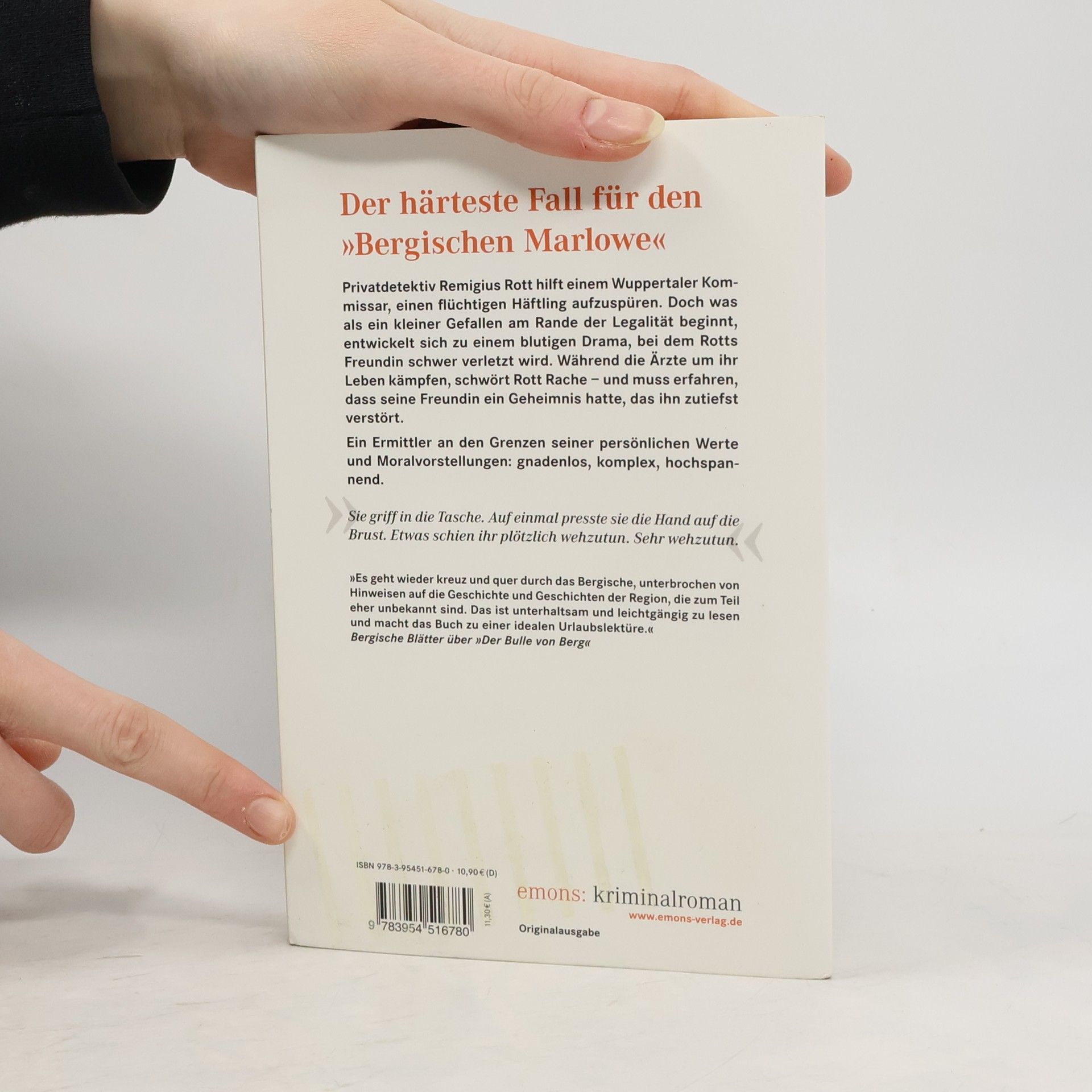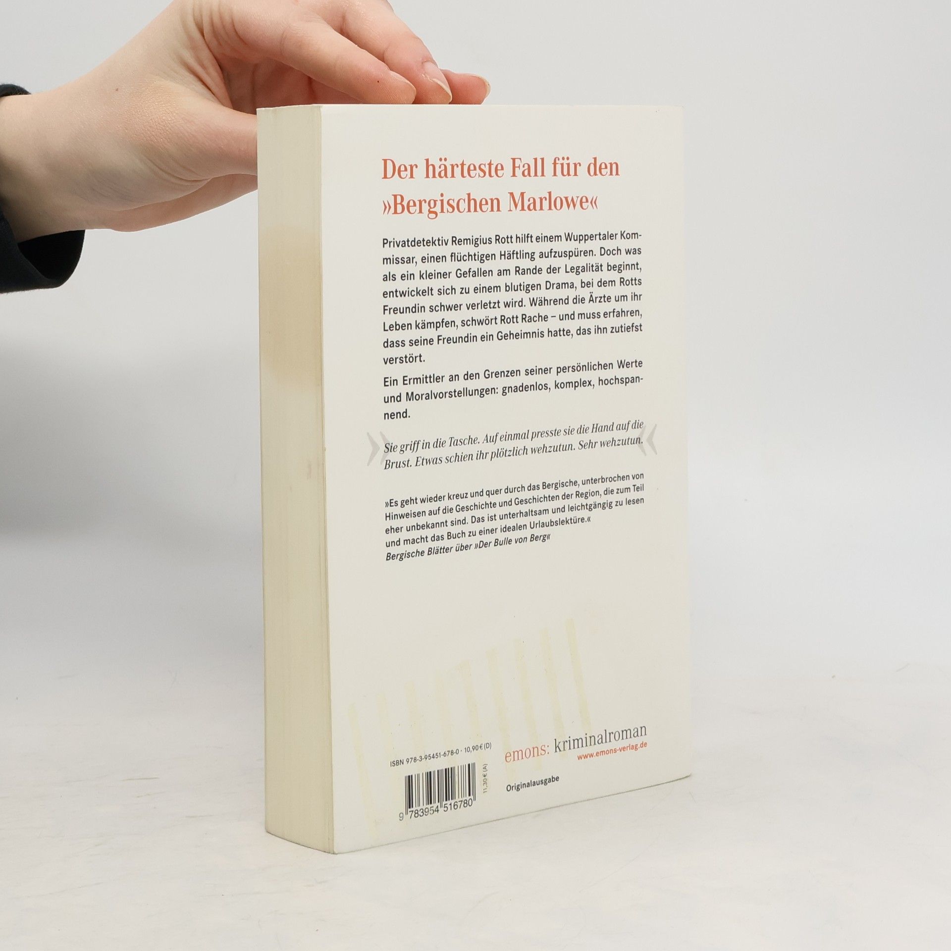 Privatdetektiv Remigius Rott hilft einem Wuppertaler Kommissar, einen flüchtigen Häftling aufzuspüren. Doch was als ein kleiner Gefallen am Rande der Legalität beginnt, entwickelt sich zu einem blutigen Drama, bei dem Rotts Freundin schwer verletzt wird. Während die Ärzte um ihr Leben kämpfen, schwört Rott Rache – und muss erfahren, dass seine Freundin ein Geheimnis hatte, das ihn zutiefst verstört.
