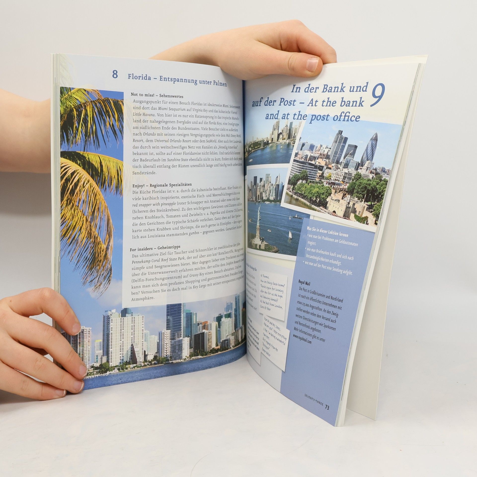 Ansprechend gestalteter 2-sprachiger Sprachkurs für Anfänger, der Englisch für Reisezwecke vermittelt und Informationen zur Landeskunde bietet.