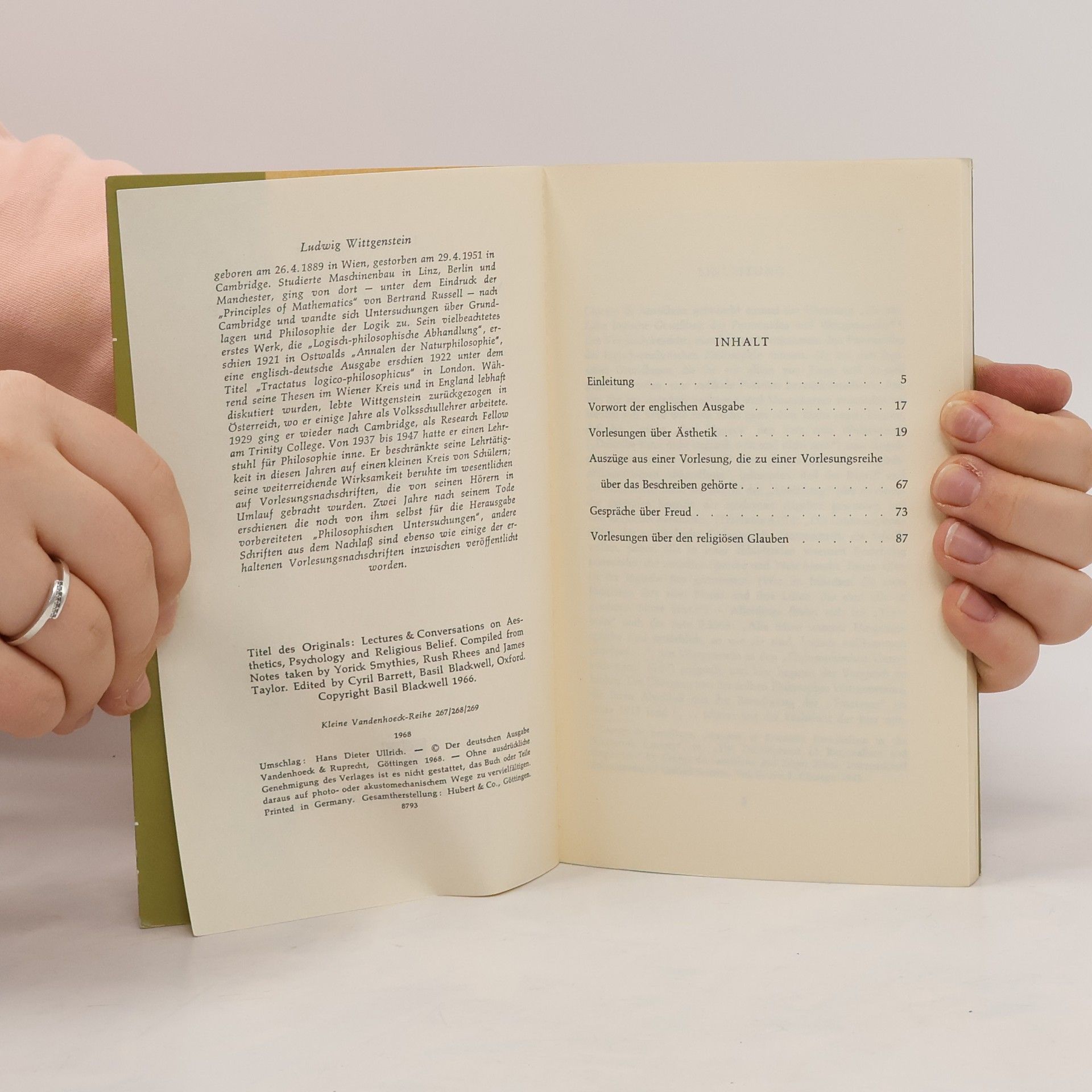 Vorlesungen und Gespräche über Ästhetik, Psychologie und Religion, Ludwig Wittgenstein
