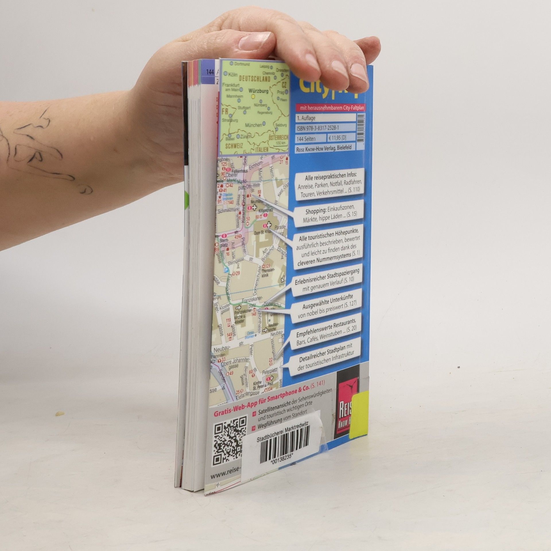 Neuer Titel der beliebten "City-Trip"--Reihe. Dieser handliche Reiseführer beschreibt ausführlich alle Sehenswürdigkeiten in und um Würzburg und bietet daneben zahlreiche Tipps zum Einkaufen, Essen und Trinken, Übernachten sowie praktische Reisetipps, z.B. zur Anreise, sowie einen kleinen Sprachkurs Fränkisch. Mit einem herausnehmbaren Stadtplan, einer Karte des Liniennetzes der Strassenbahn im Umschlag und einer Gratis-App zum Download. Kein aktueller Vergleichstitel bekannt; sehr gerne empfohlen. (2)