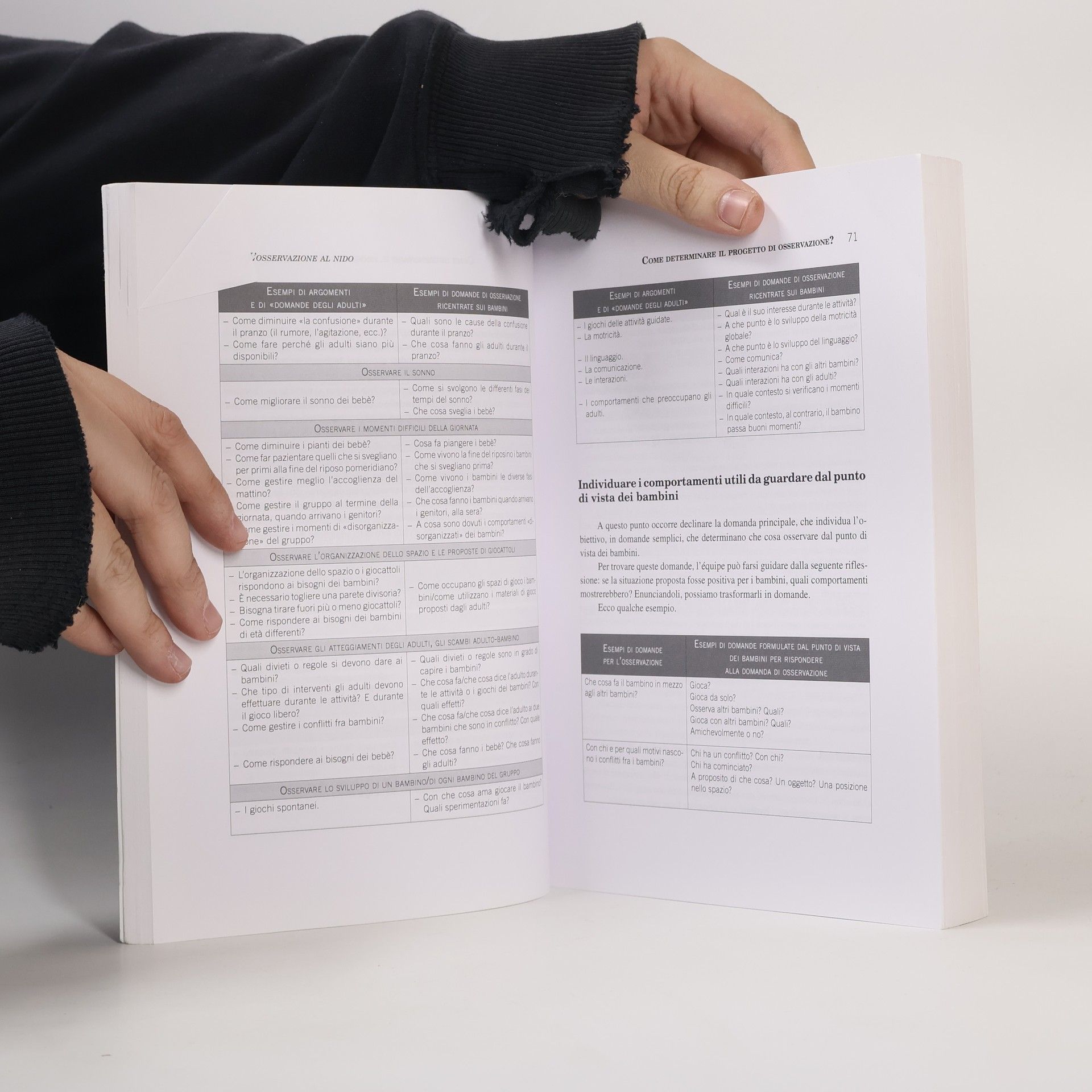 Frutto di vent'anni di esperienze di formazione realizzate sul campo con gruppi di educatrici dei nidi d'infanzia, il libro propone una vera e propria strategia di lavoro innovativa nella vita quotidiana al nido, basata sull'osservazione. Un manuale completo e ricco di spunti, che ben si presta ad accompagnare le educatrici e gli educatori, così come i gruppi di lavoro, nella soluzione dei problemi e delle difficoltà che possono sorgere nel lavoro educativo quotidiano: l'organizzazione dello spazio e le proposte dei giocattoli; le interazioni fra bambini; le attività; il pasto; i momenti difficili della giornata; lo sviluppo dei bambini. [Testo dell'editore].