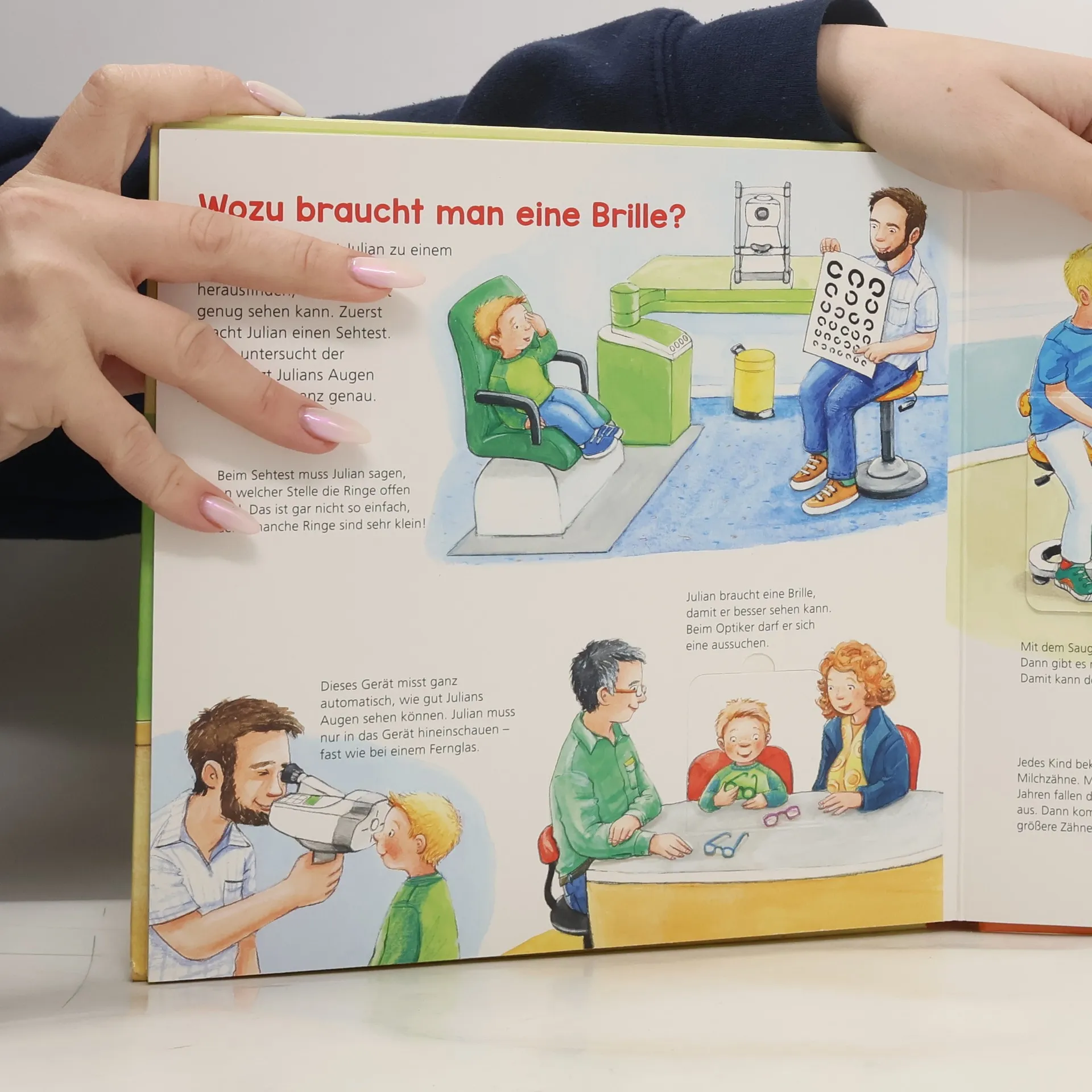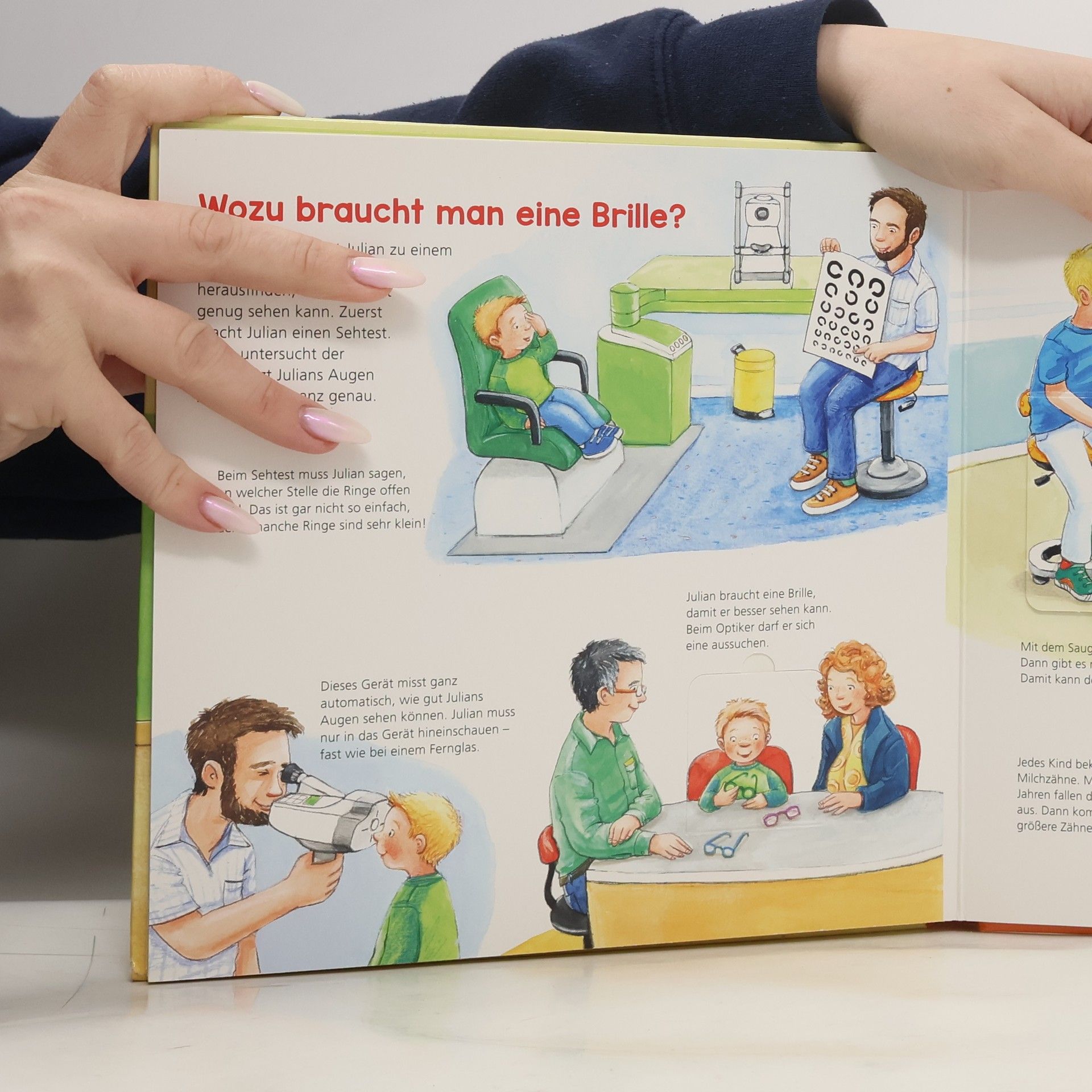Warum werden Menschen krank? Was passiert während einer Untersuchung beim Arzt? Und wie kann man sich vor Krankheiten schützen? Um Antworten auf diese und weitere Fragen zu finden, besuchen die Kindergartenkinder eine Arztpraxis und lassen sich dort alles ganz genau erklären. Sie erfahren, wie man den eigenen Herzschlag fühlen kann, wozu die Ärztin ein Otoskop benötigt oder was ein Ultraschallgerät sichtbar macht. Stabile Klappen auf jeder Seite geben zudem überraschende Einblicke in die Abläufe einer Untersuchung und zeigen Gegenstände aus dem Praxisalltag. Mit Bastelanleitung für ein eigenes Stethoskop!