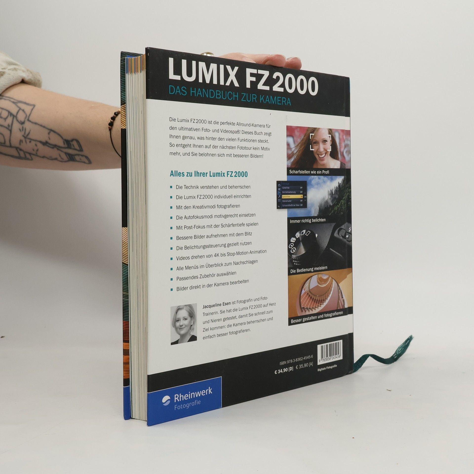 Die Fototrainerin Jacqueline Esen hat die Lumix FZ2000 auf Herz und Nieren geprüft und dieses Buch für Sie verfasst. Sie hilft Ihnen, die vielen Knöpfe und Einstellungsmöglichkeiten der Kamera nach „wichtig“ und „weniger wichtig“ zu sortieren. Sie zeigt Ihnen genau, was hinter den vielen Funktionen steckt, und macht Sie so zu einem echten Kenner der Lumix FZ2000. Sie lernen, Ihre Bilder situationsgerecht und gekonnt zu belichten, den Autofokus richtig einzusetzen, und auch das Verfeinern Ihrer Bilder mit Hilfe von Farbe und Effekten direkt in der Kamera kommt nicht zu kurz. Aus dem Inhalt: Die Technik verstehen und perfekt beherrschen Die Lumix FZ2000 individuell einrichten Mit den Kreativmodi fotografieren Die Autofokusmodi motivgerecht einsetzen Bessere Bilder aufnehmen mit dem Blitz Die Belichtungssteuerung gezielt nutzen Von den Vorteilen des RAW-Formats profitieren Bewegte Momente im 4K-Filmmodus festhalten Fotos am Rechner einfach nachbearbeiten