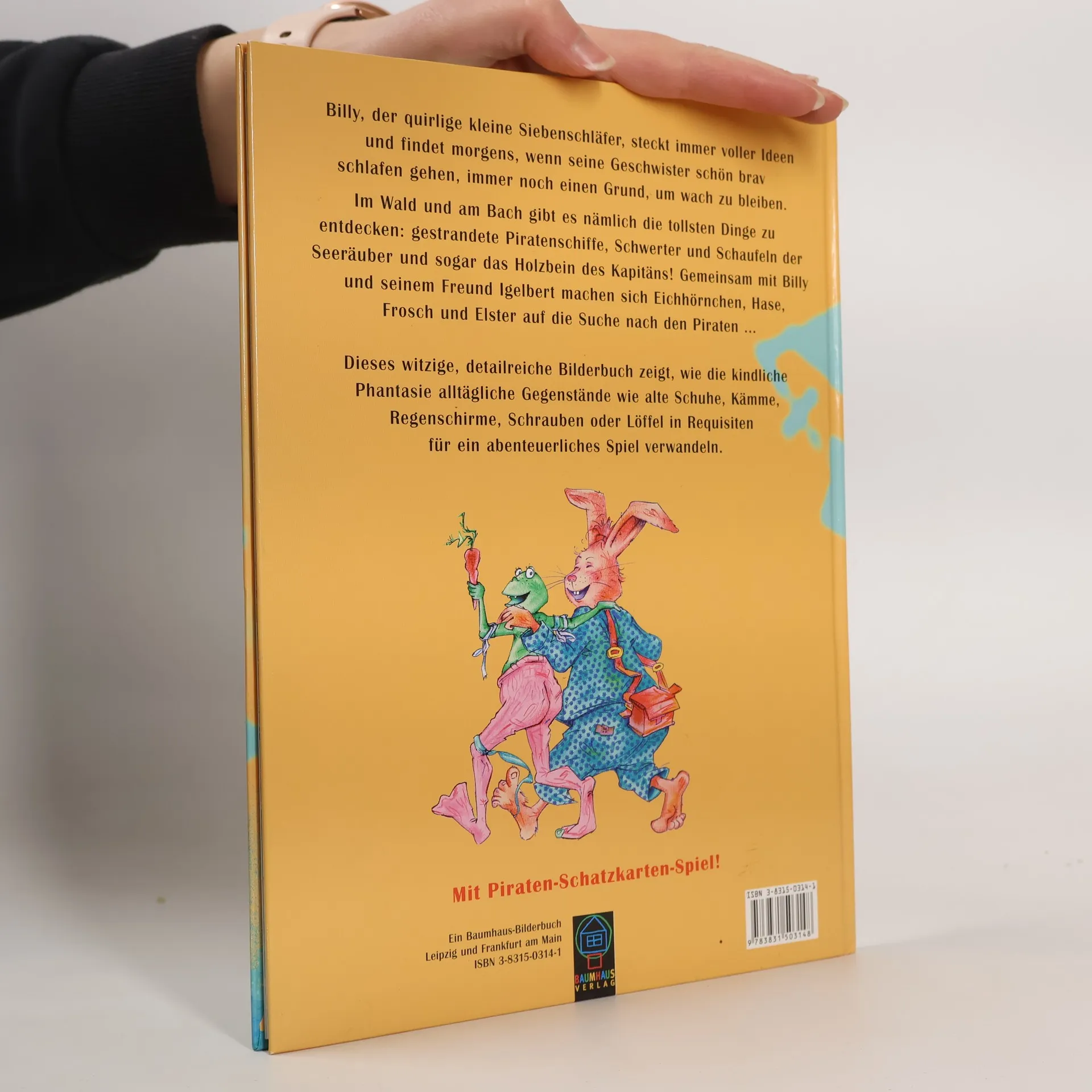 Billy, der quirlige kleine Siebenschläfer, steckt immer voller Ideen. Während seine Geschwister wie alle nachtaktiven Nager morgens ab sieben schlafen gehen, entdeckt Billy immer noch einen Grund, um wach zu bleiben. Im Wald und am Bach gibt es nämlich die tollsten Dinge zu entdecken: gestrandete Piratenschiffe, das Holzbein des Kapitäns, Schwerter und Schaufeln! Billy und sein Freund Igelbert erzählen den anderen Tieren von ihrer Entdeckung ? und prompt machen sich alle auf den Weg zur Piraten-Hochburg. Witziges, detailreiches Bilderbuch, das zeigt, wie die kindliche Phantasie alltägliche Gegenstände wie alte Schuhen, Kämme, Regenschirme, Schrauben oder Löffel zu Requisiten für ein abenteuerliches Spiel verwandel Mit Piraten-Schatzkarten-Spiel! AUTOR: Jahrgang 1966, war Kaufmann, Weinhändler, Möbelpacker und Popmusiker. Heute arbeitet er als freier Journalist und Redakteur und ist Autor ungezählter Essays, Glossen, Kritiken, Erzählungen und Romane.