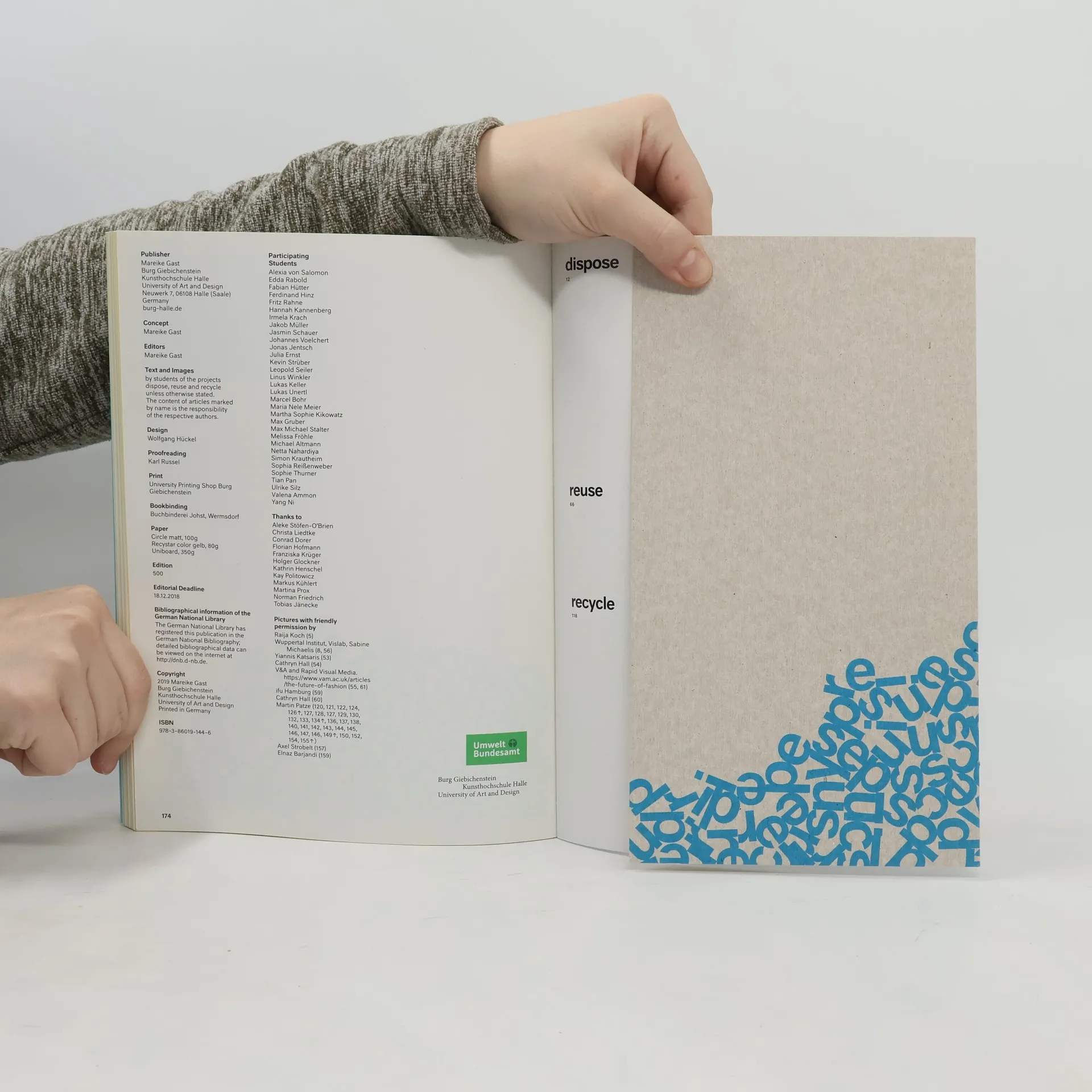 Dieses Buch zeigt Projekte von Industriedesign-Studenten der Burg Giebichenstein Hochschule für Kunst und Design Halle aus den Projekten dispose reuse recycle geleitet von Prof. Mareike Gast aus den Jahren 2017/18. Alle drei Projekte konzentrieren sich auf eine kritische Auseinandersetzung mit dem Thema Nachhaltigkeit im Kontext des Industriedesigns. Die entwickelten Konzepte überzeugen durch die visionäre Gestaltung von zirkulären Materialflüssen und zukunftsweisenden Verbraucher- und Produktionsstrukturen. Bereichert werden die Projektdarstellungen durch zahlreiche Gastbeiträge in Form von Essays und Interviews. Das Umweltbundesamt hat diese Veröffentlichung ermöglicht.