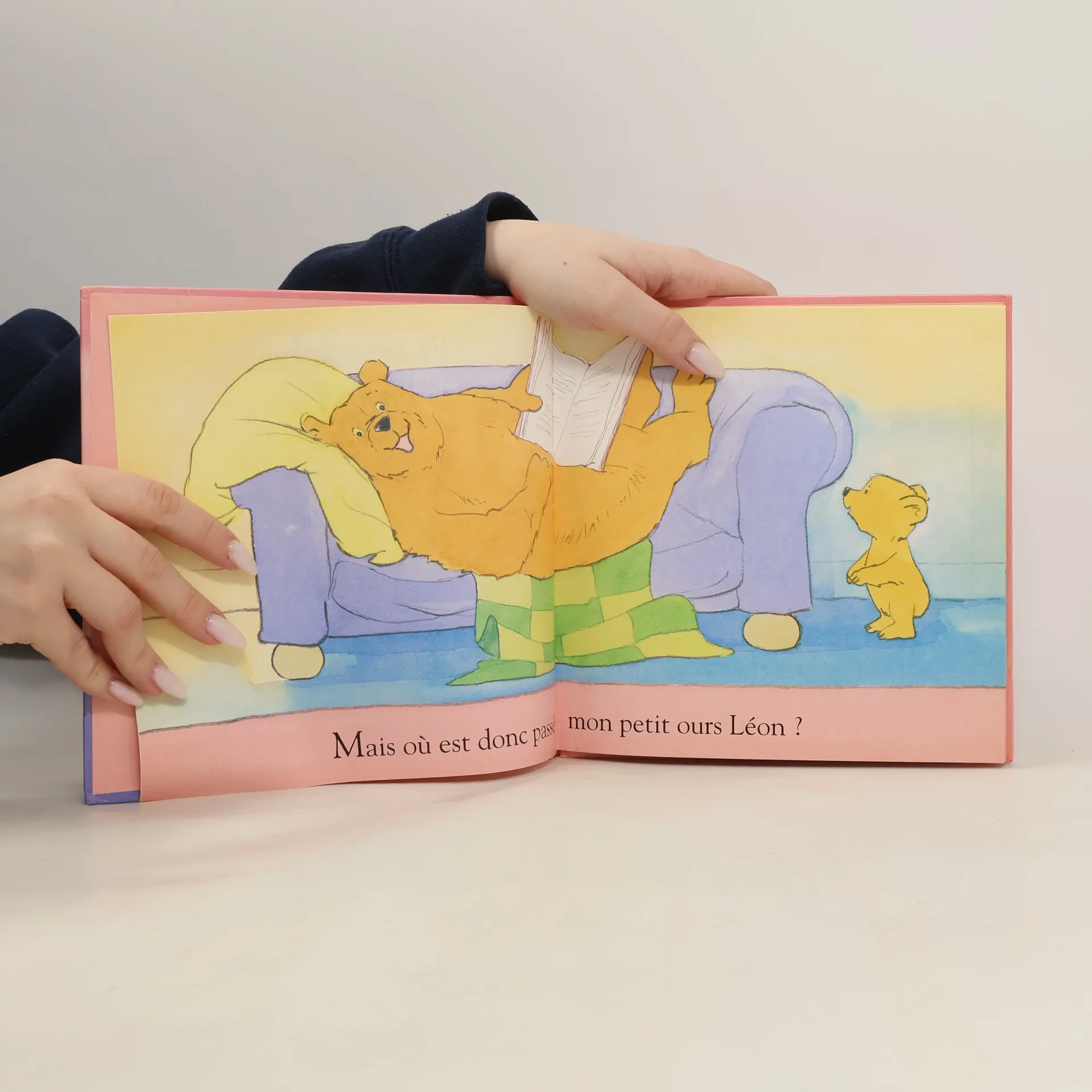 Papa ours et son petit Léon jouent à la cachette. Une histoire sans prétention et des illustrations au plomb et à l'aquarelle, pleines de sensibilité.