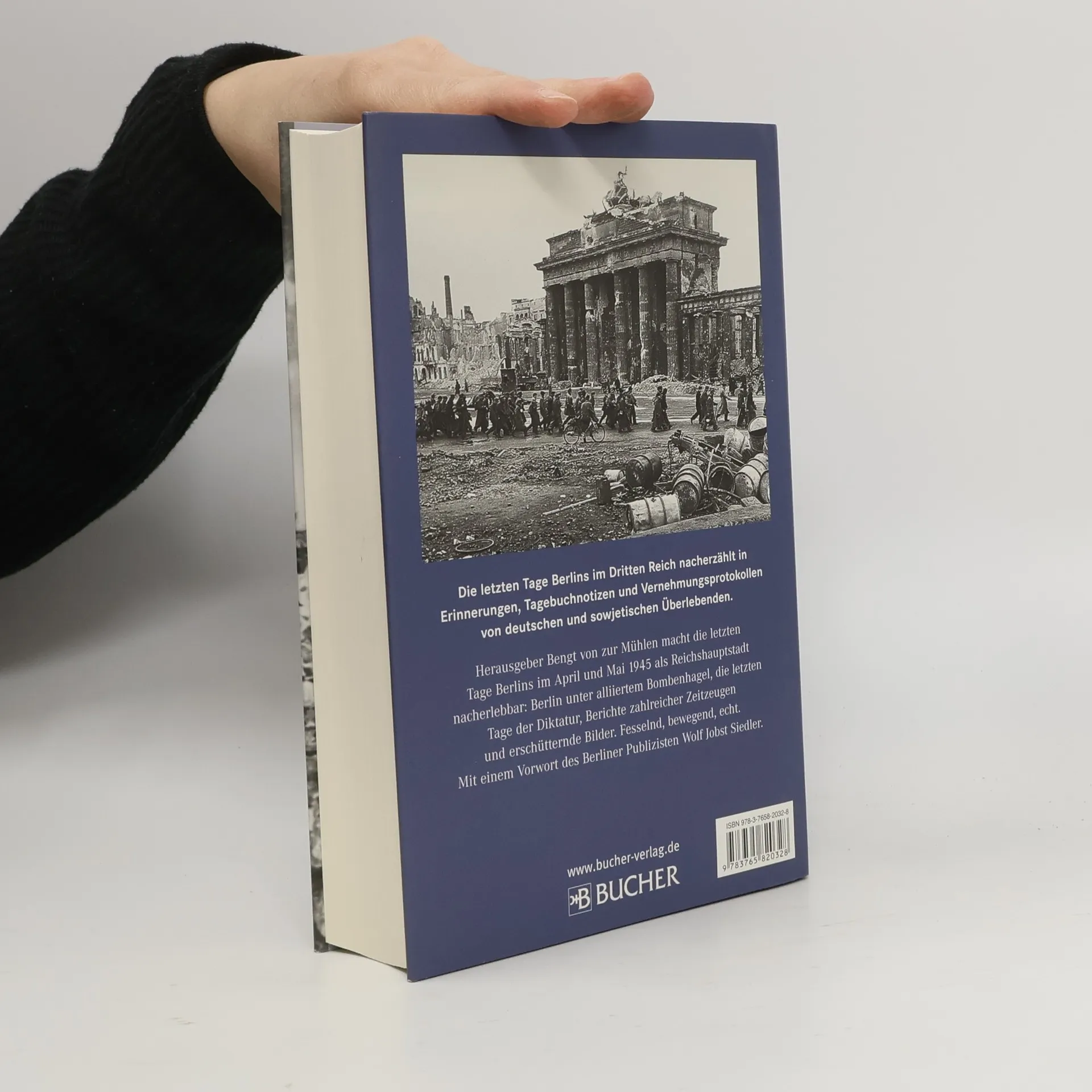 Herausgeber Bengt von zur Mühlen bediente sich des größten privaten Filmarchivs Deutschlands – und macht die letzten Tage Berlins im April und Mai 1945 als Reichshauptstadt nacherlebbar: Berlin unter alliiertem Bombenhagel, die letzten Tage der Diktatur, Berichte zahlreicher Zeitzeugen und erschütternde, teils bisher unbekannte Bilder. Fesselnd, bewegend, echt. Mit einem Vorwort des Berliner Publizisten Wolf Jobst Siedler.