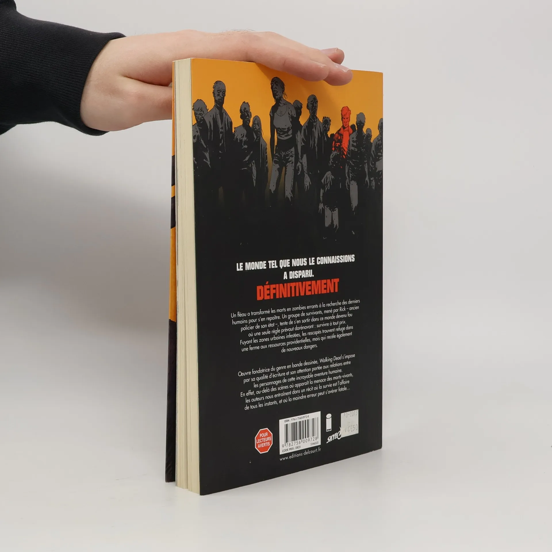 Un fléau a transformé les morts en zombies errants à la recherche des derniers humains pour s'en repaître. Un groupe de rescapés, menés par Rick - ancien policier de son état - tente de s'en sortir dans ce monde devenu fou où une seule règle prévaut dorénavant : survivre à tout prix. Fuyant les zones urbaines infestées, les rescapés trouvent refuge dans une ferme aux ressources providentielles, mais qui recèle également de nouveaux dangers. Œuvre fondatrice du genre en bande dessinée, Walking Dead s'impose par sa qualité d'écriture et son attention portée aux relations entre les personnages de cette incroyable aventure humaine. En effet, au-delà des scènes où apparaît la menace des morts-vivants, les auteurs nous entraînent dans un récit où la survie est l'affaire de tous les instants, et où la moindre erreur peut s'avérer fatale...