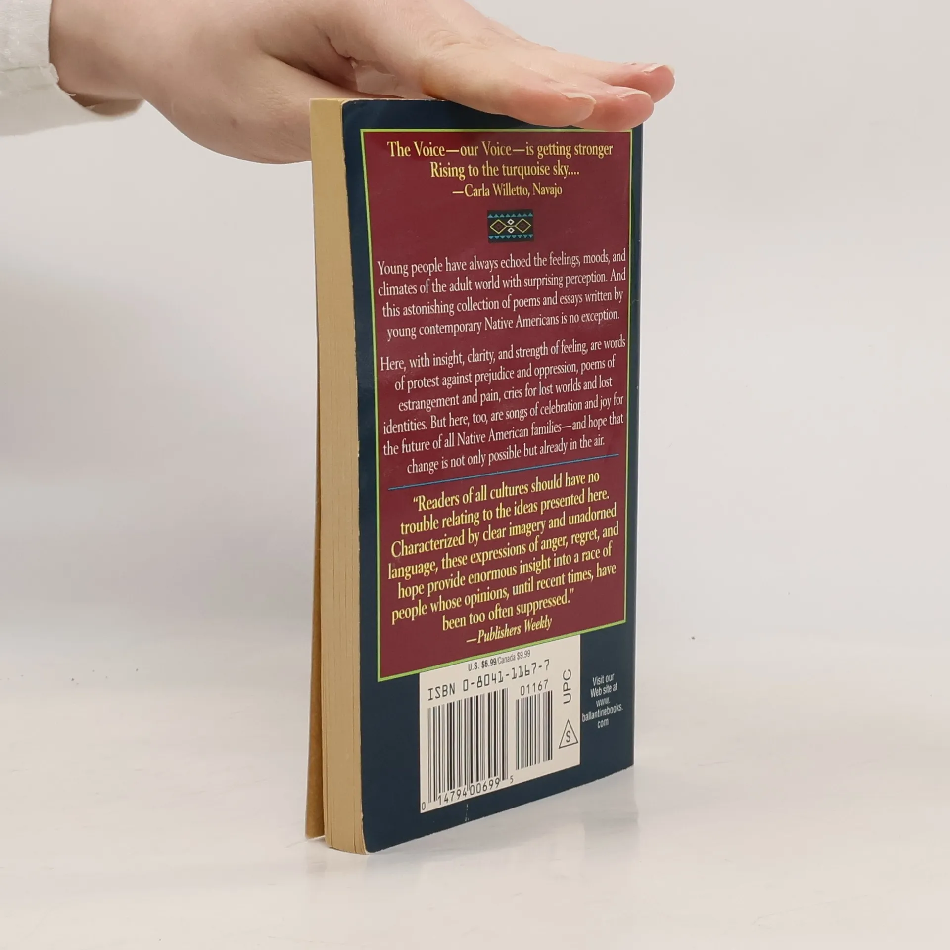 An astonishing collection of poems and essays written by young contemporary Native Americans. Words of protest against prejudice and oppression, poems of estrangement and pain, cries for lost worlds and lost identities -- but also songs of celebration and joy for the future.