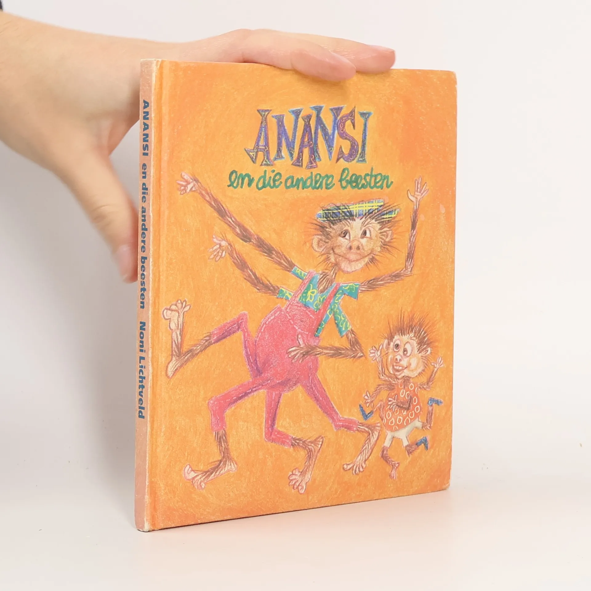 De slimme spin Anansi redt door middel van een list de brutale aap uit de klauwen van de tijger. Prentenboek met vrolijk gekleurde platen. Vanaf ca. 4 jaar.