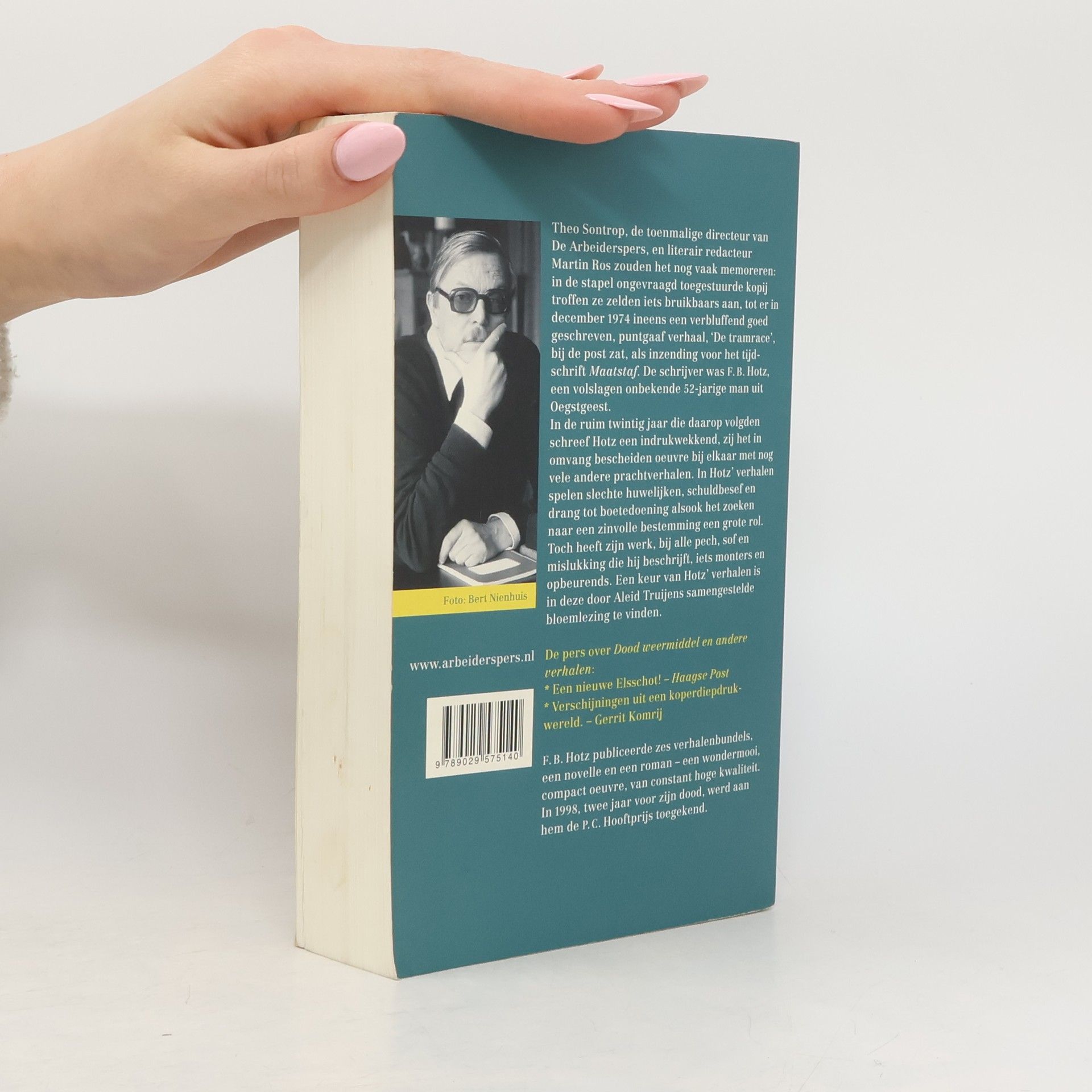 Theo Sontrop, de toenmalige directeur van De Arbeiderspers, en literair redacteur Martin Ros zouden het nog vaak in de stapel ongevraagd toegestuurde kopij troffen ze zelden iets bruikbaars aan, tot er in december 1974 ineens een verbluffend goed geschreven, puntgaaf verhaal, 'De tramrace', bij de post zat, als inzending voor het tijdschrift Maatstaf. De schrijver was F.B. Hotz, een volslagen onbekende 52-jarige man uit Oegstgeest.In de ruim twintig jaar die daarop volgden schreef Hotz een indrukwekkend, zij het in omvang bescheiden oeuvre bij elkaar met nog vele andere prachtverhalen. In Hotz' verhalen spelen slechte huwelijken, schuldbesef en drang tot boetedoening alsook het zoeken naar een zinvolle bestemming een grote rol. Toch heeft zijn werk, bij alle pech, sof en mislukking die hij beschrijft, iets monters en opbeurends. Een keur van Hotz' verhalen is in deze door Aleid Truijens samengestelde bloemlezing te vinden.