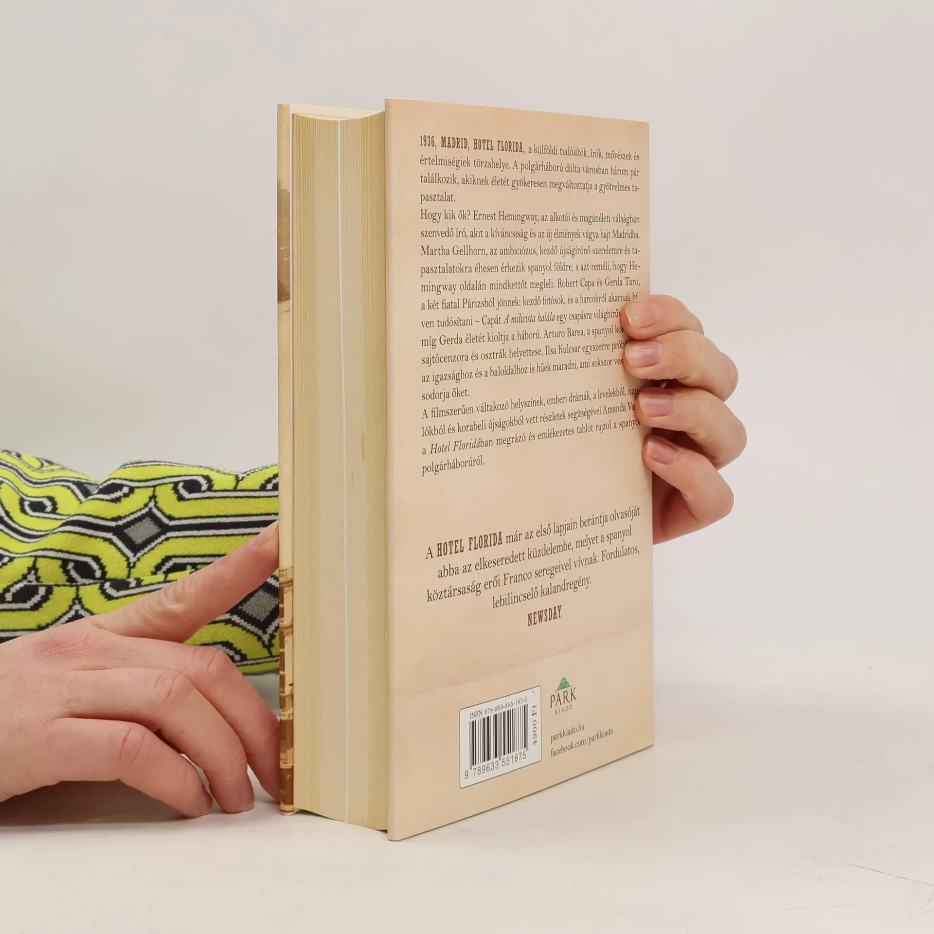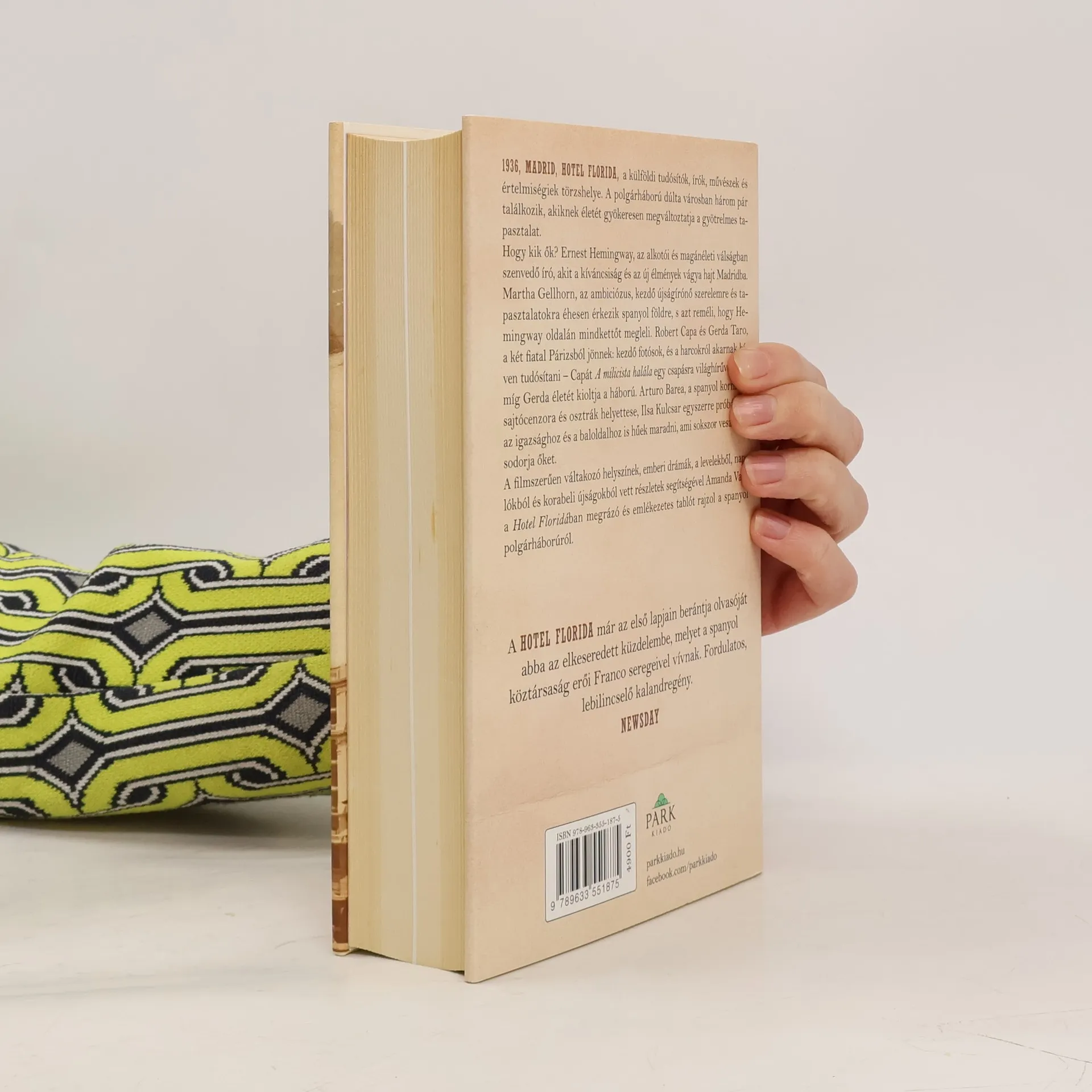 1936, Madrid, Hotel Florida, a külföldi tudósítók, írók, művészek és értelmiségiek törzshelye. A polgárháború dúlta városban három pár találkozik, akiknek életét gyökeresen megváltoztatja a gyötrelmes tapasztalat. Hogy kik ők? Ernest Hemingway, az alkotói és magánéleti válságban szenvedő író, akit a kíváncsiság és az új élmények vágya hajt Madridba. Martha Gellhorn, az ambiciózus, kezdő újságírónő szerelemre és tapasztalatokra éhesen érkezik spanyol földre, s azt reméli, hogy Hemingway oldalán mindkettőt megleli. Robert Capa és Gerda Taro, a két fiatal Párizsból jönnek: kezdő fotósok és a harcokról akarnak híven tudósítani – Capát A milicista halála egy csapásra világhírűvé teszi, míg Gerda életét kioltja a háború. Arturo Barea, a spanyol kormány sajtócenzora és osztrák helyettese, Ilsa Kulcsar egyszerre próbálnak az igazsághoz és a baloldalhoz is hűek maradni, ami sokszor veszélybe sodorja őket. A filmszerűen váltakozó helyszínek, emberi drámák, a levelekből, naplókból és korabeli újságokból vett részletek segítségével Amanda Vaill a Hotel Floridában megrázó és emlékezetes tablót rajzol a spanyol polgárháborúról. Amanda Vaill amerikai forgatókönyvíró, újságíró és életrajzi könyvek szerzője. Cikkeit és kritikáit rendszeresen közli a The New York Observer, az Esquire és a Harper’s Bazaar. Hotel Florida című könyvét a The New York Times Book Review szerkesztői 2014 száz legjobb könyve közé választották.
