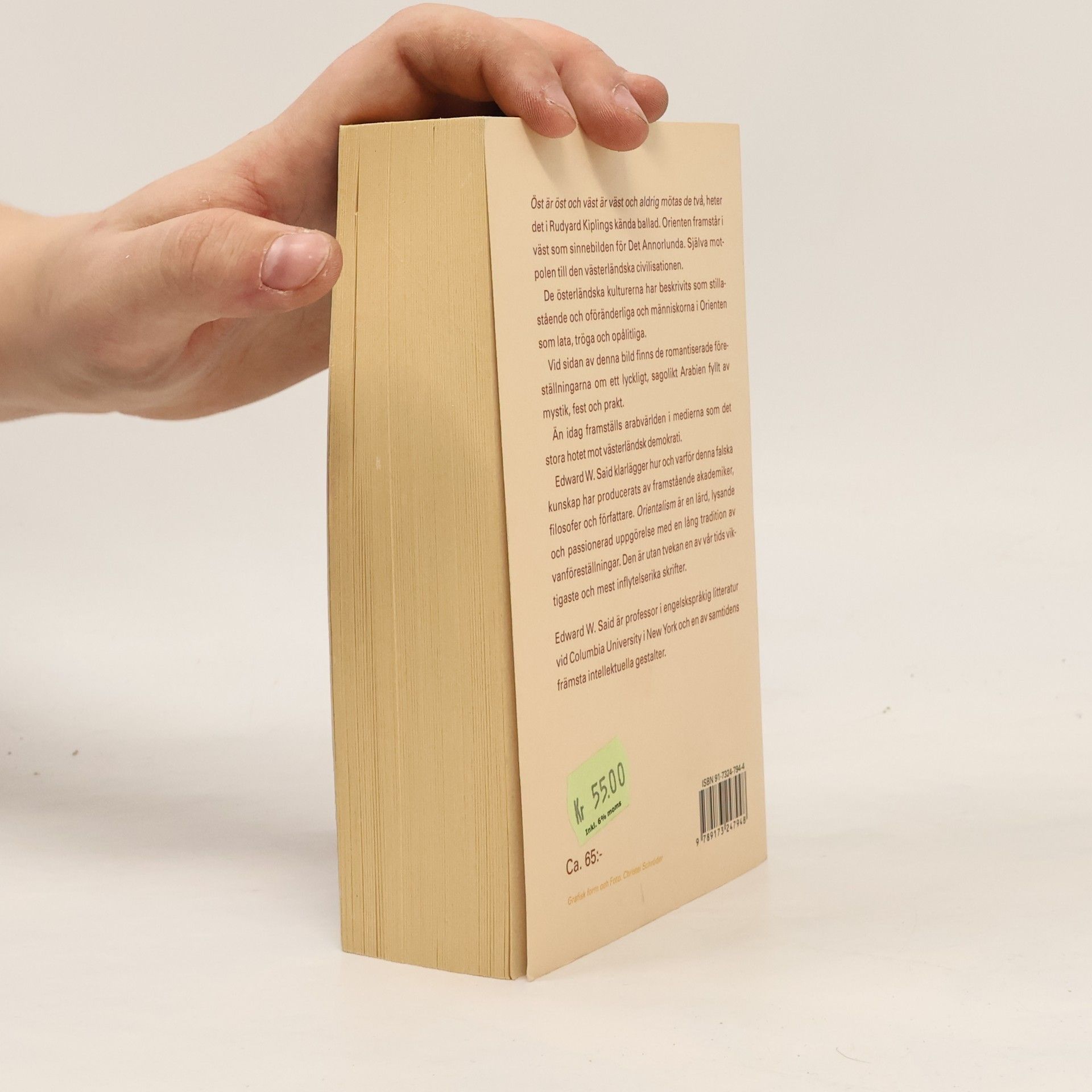 Öst är öst och väst är väst och aldrig mötas de två, heter det i Rudyard Kiplings kända ballad. Orienten framstår i väst som sinnebilden för Det Annorlunda. Själva motpolen till den västerländska civilisationen. De österländska kulturerna har beskrivits som stillastående och oförändliga och människor i Orienten som lata, tröga och opålitliga. Vid sidan av denna bild finns de romantiserade föreställningarna om ett lyckligt, sagolikt Arabien fyllt av mystik, fest och prakt. Än idag framställs arabvärlden i medierna som det stora hotet mot västerländsk demokrati. Edward W. Said klarlägger hur och varför denna falska kunskap har producerats av framstående akademiker, filosofer och författare. Orientalism är en lärd, lysande och passionerad uppgörelse med en lång tradition av vanföreställningar. Den är utan tvekan en av vår tids viktigaste och mest inflytelserika skrifter.