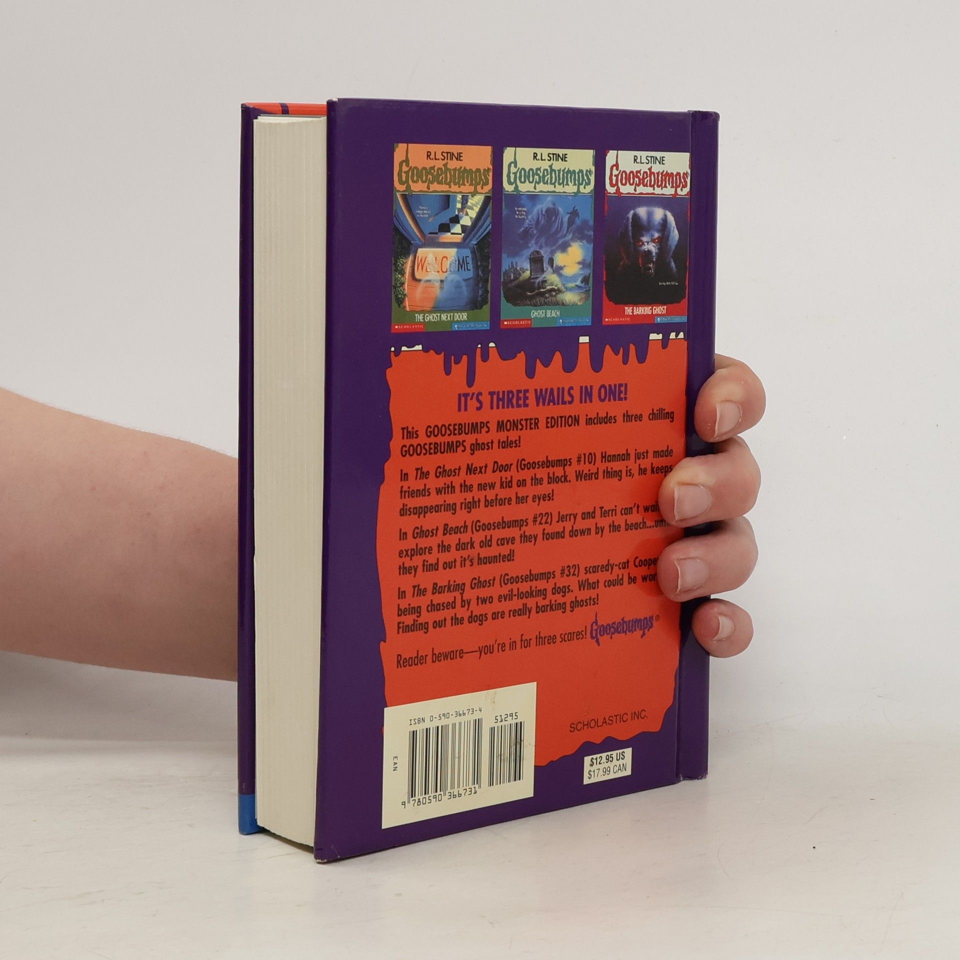 A monster edition of three classic Goosebumps tales comes complete with a wailing sound chip and the classic stories:- The Ghost Next Door- Ghost Beach- Barking Ghost.