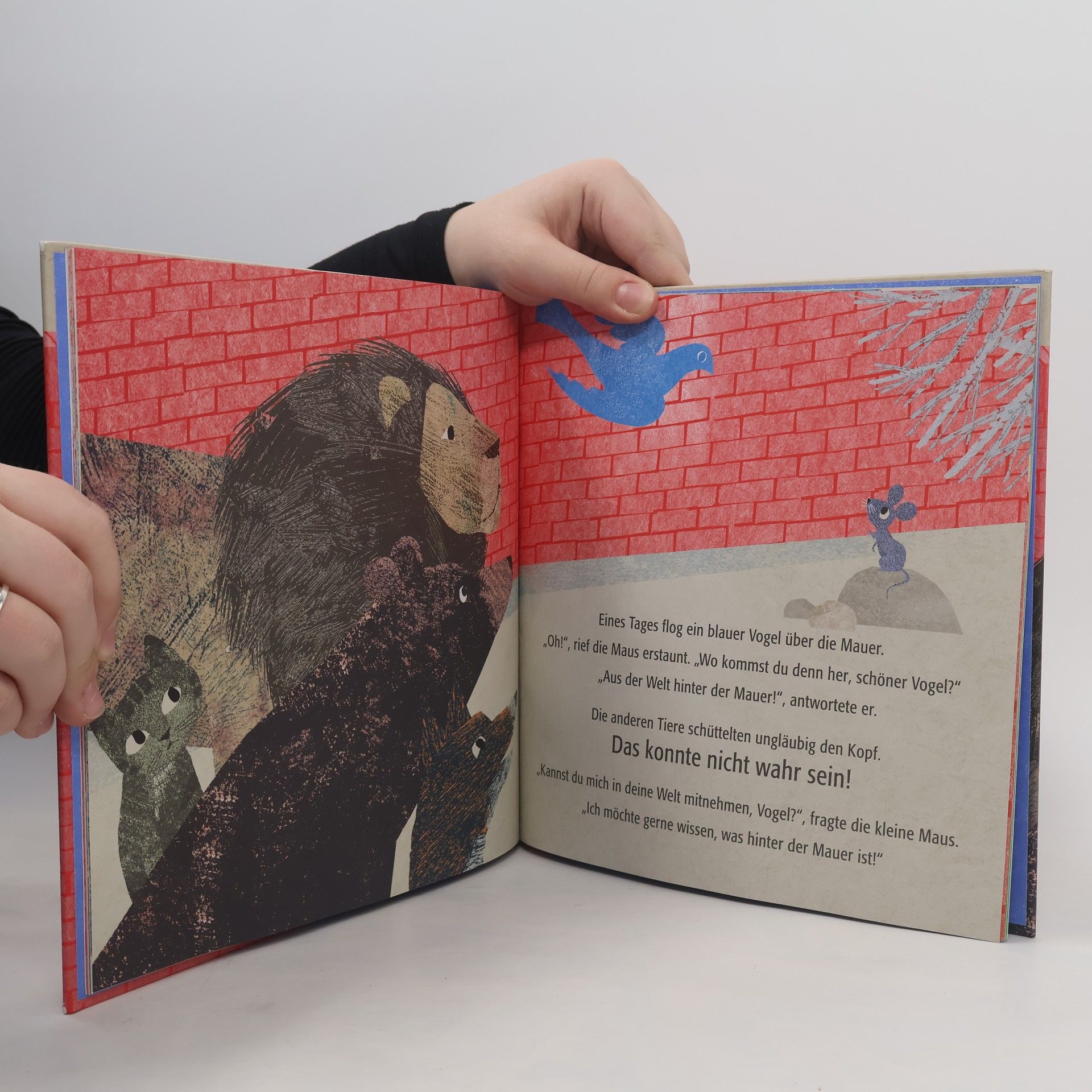 Für alle Furchtlosen – und eine Welt ohne Mauern. Was passieren kann, wenn man mutig ist, seine Ängste überwindet und sein Herz öffnet – das zeigt uns die kleine Maus, die gemeinsam mit vielen Tieren hinter einer großen roten Mauer lebt. Eines Tages macht sie sich neugierig auf den Weg auf die andere Seite und entdeckt dort eine Welt, noch viel schöner und bunter, als sie es sich jemals vorstellen konnte. Und als die kleine Maus später zu den anderen Tieren zurückkehrt, ist die Mauer plötzlich verschwunden ... Poetisch erzählt und illustriert von Britta Teckentrup.