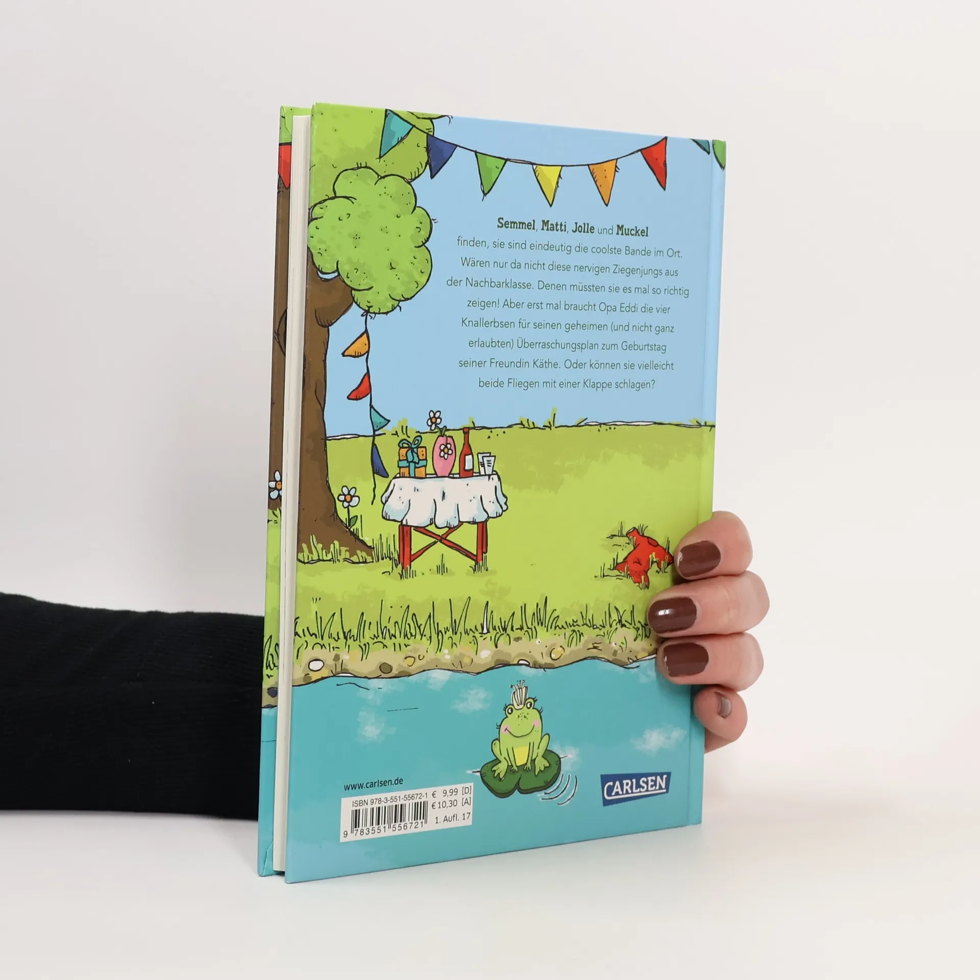 Semmel, Matti, Jolle und Muckel sind eindeutig die coolste Bande im Ort, finden sie – wären da nicht diese nervigen Ziegenjungs aus der Nachbarklasse. Denen müssten sie es mal so richtig zeigen! Aber erst sollen die vier Knallerbsen Opa Eddi helfen, der braucht sie nämlich für seinen geheimen (und nicht ganz erlaubten) Überraschungsplan zum Geburtstag seiner Freundin Käthe. Oder können sie vielleicht beide Fliegen mit einer Klappe schlagen?