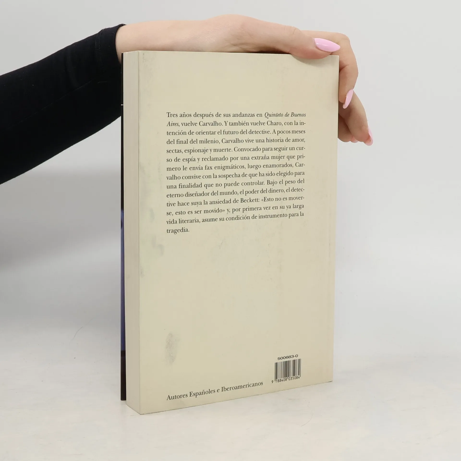 Tres años después de sus andanzas en Quinteto de Buenos Aires, vuelve Carvalho. Y también vuelve Charo con la intención de orientar el futuro del detective. A pocos meses del final del milenio, Carvalho vive una historia de amor, sectas, espionaje y muerte. Convocado para seguir un curso de espía y reclamado por una extraña mujer que le envía faxes, primero enigmáticos, luego enamorados, Carvalho convive con la sospecha de que ha sido elegido para una finalidad que no puede controlar. Bajo el peso del eterno diseñador del mundo, el poder del dinero, el detective hace suya la ansiedad de Beckett: «Esto no es moverse, esto es ser movido» y, por primera vez en su ya larga vida literaria asume su condición de instrumento para la tragedia.