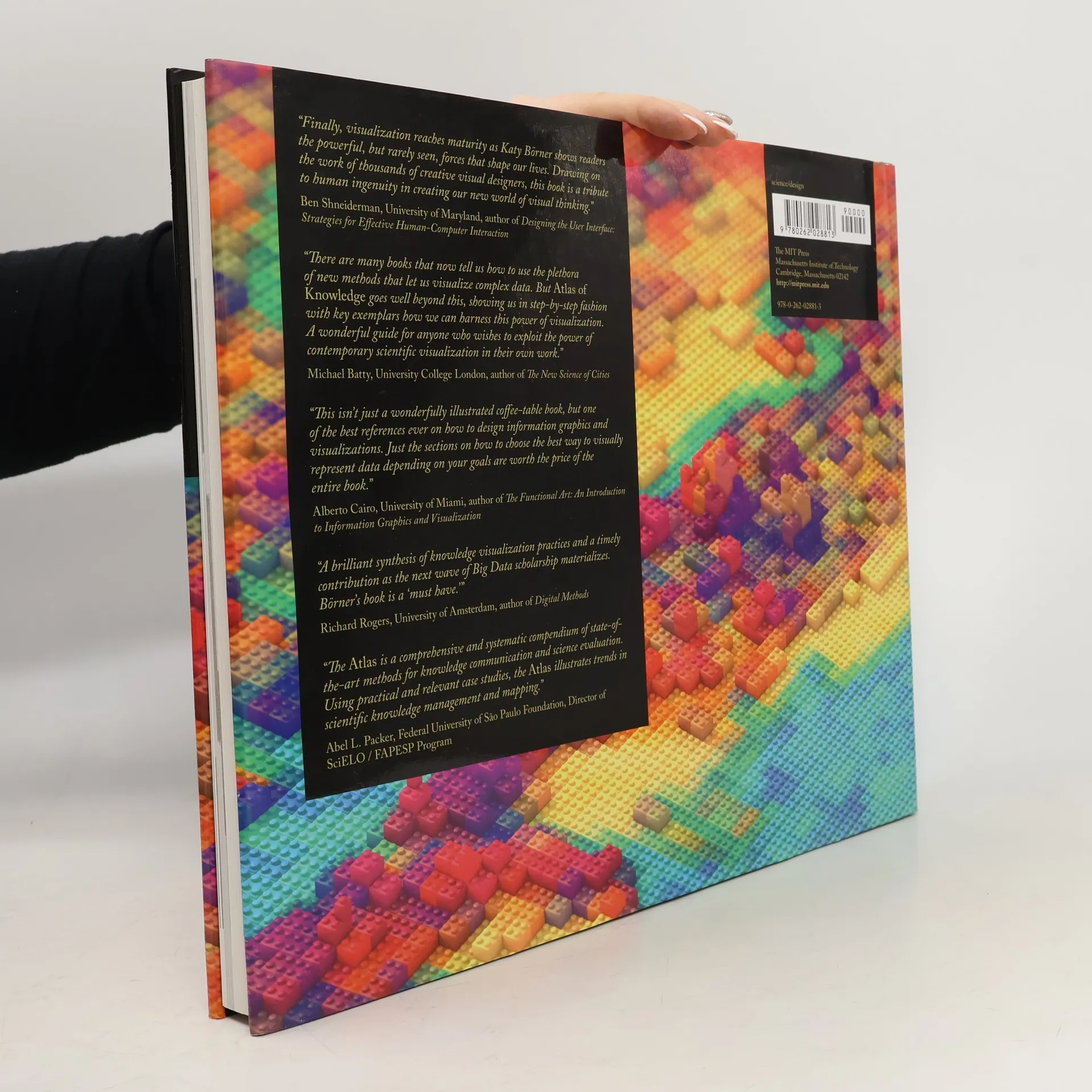 The power of principles for visualizing knowledge, illustrated by many stunning large-scale, full-color maps. Maps of physical spaces locate us in the world and help us navigate unfamiliar routes. Maps of topical spaces help us visualize the extent and structure of our collective knowledge; they reveal bursts of activity, pathways of ideas, and borders that beg to be crossed. This book, from the author of Atlas of Science , describes the power of topical maps, providing readers with principles for visualizing knowledge and offering as examples forty large-scale and more than 100 small-scale full-color maps. Today, data literacy is becoming as important as language literacy. Well-designed visualizations can rescue us from a sea of data, helping us to make sense of information, connect ideas, and make better decisions in real time. In Atlas of Knowledge , leading visualization expert Katy Börner makes the case for a systems science approach to science and technology studies and explains different types and levels of analysis. Drawing on fifteen years of teaching and tool development, she introduces a theoretical framework meant to guide readers through user and task analysis; data preparation, analysis, and visualization; visualization deployment; and the interpretation of science maps. To exemplify the framework, the Atlas features striking and enlightening new maps from the popular “Places & Mapping Science” exhibit that range from “Key Events in the Development of the Video Tape Recorder” to “Mobile Location Data from Cell Phones for Urban Analysis” to “Literary Mapping Temporal and Spatial Settings of Victorian Poetry” to “Seeing A Visualization of the Metadata Universe.” She also discusses the possible effect of science maps on the practice of science.