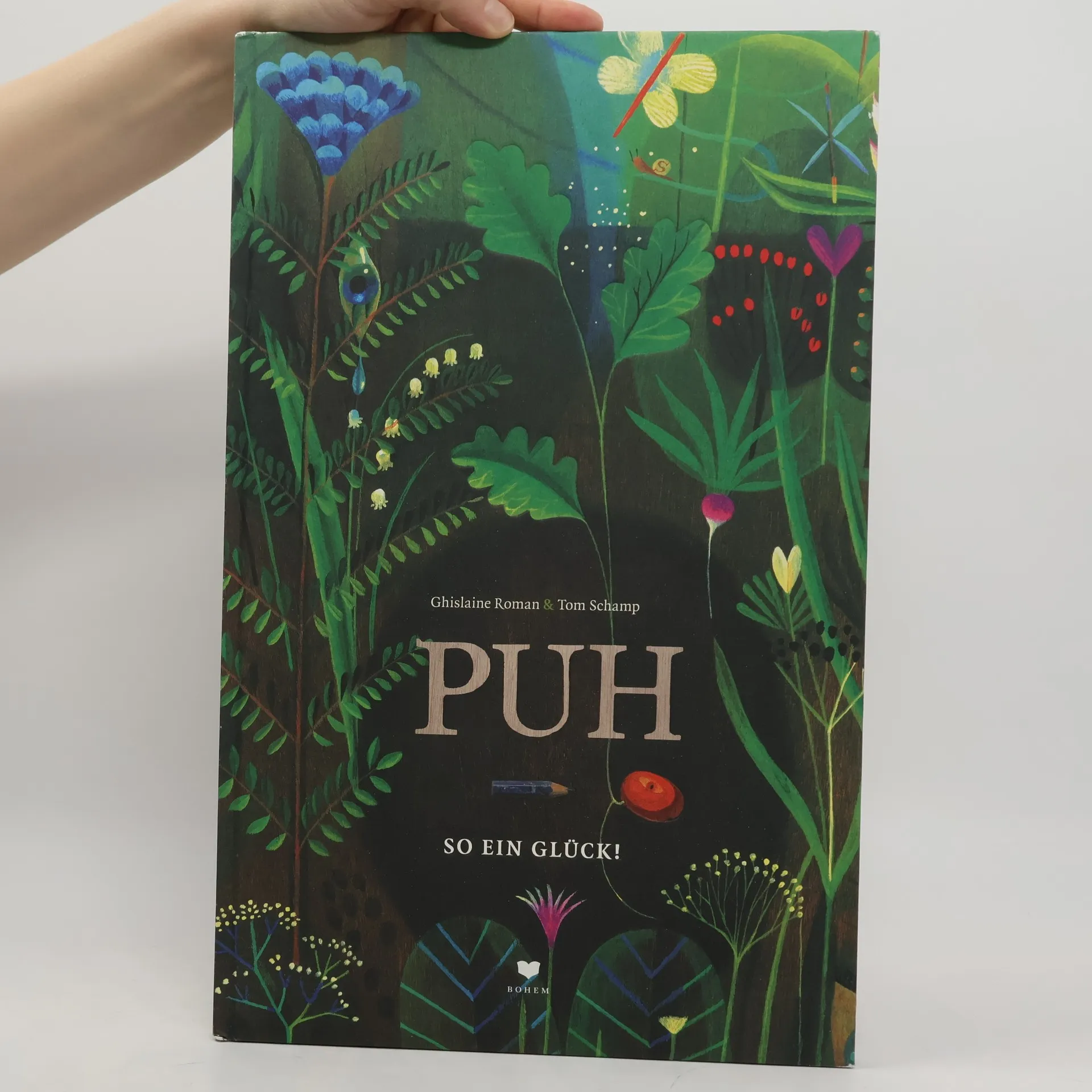 Puh!<br>Zufall und Zeit sind die Akteure in diesem grandiosen Buch. Von einem Baumleben. Von einem Menschenleben.<br><br>Eine Eichel fällt zu Boden und wird trotz vieler Hindernisse und Gefahren über die Jahre hinweg ein stolzer Baum. Der Baum als Symbol für den Menschen, dessen Lebensweg mit allen Hochs und Tiefs und mit vielen glücklichen Zufällen beschrieben wird, wurde von Tom Schamp eindrucksvoll in warmen Farben auf Holz malerisch bebildert. Wachsen, staunen, fallen, wieder aufstehen und ... „Puh! “ ... erleichtert aufatmen – all dies mündet bei dieser Geschichte in einem absoluten Glücksgefühl. Dem Glück, zu leben!