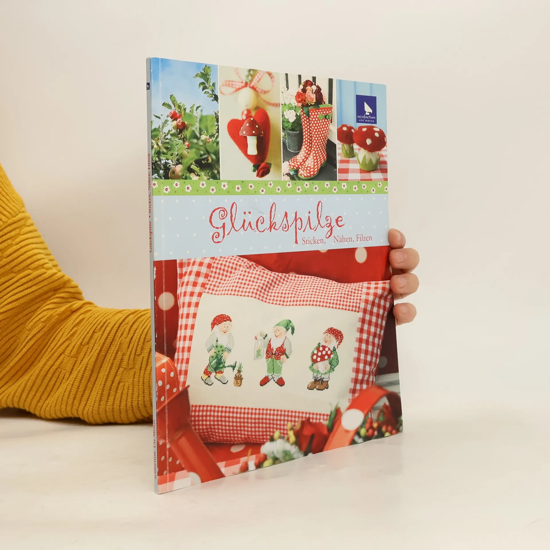 Glückspilze. Sticken, Nähen, Filzen. Drei lustige Gartenzwerge und fröhliche Fliegenpilze sind die Hauptdarsteller dieses Buches. Entdecken Sie die bunte Welt dieser kleinen Gesellen. Gestickte und genähte Kissen, Läufer, Herzen, Behänge, Pilze und vieles mehr verbreiten fröhliches Ambiente. Gefilzte Accessoires und farbenfrohe Dekorationen setzen weitere kreative Akzente in diesem Buch. Erleichtert wird Ihnen das Nacharbeiten der gezeigten Modelle in dem Anleitungsteil durch anschauliche Skizzen und Schablonen