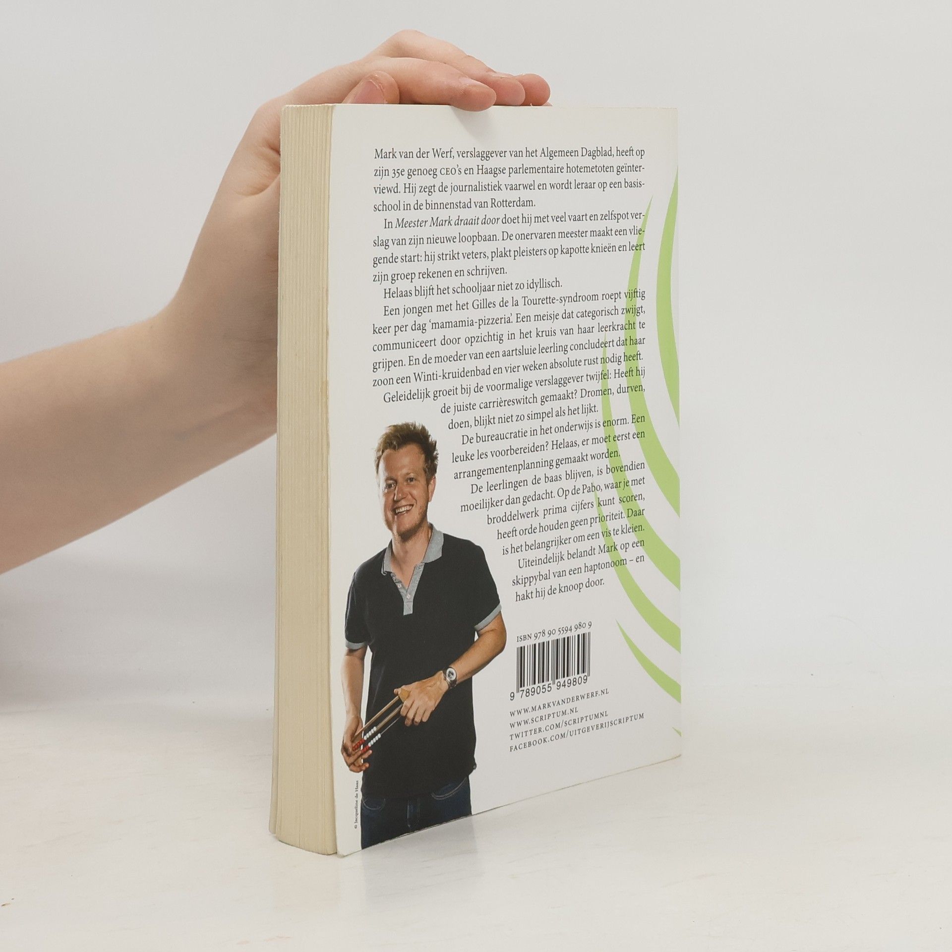 Mark van der Werf, verslaggever van het Algemeen Dagblad, zegt op 35-jarige leeftijd de journalistiek vaarwel en wordt leraar op een basisschool in Rotterdam. In Meester Mark draait door beschrijft hij met vaart en zelfspot zijn nieuwe loopbaan. De onervaren meester maakt een vliegende start: hij strikt veters, plakt pleisters op kapotte knieën en leert zijn groep rekenen en schrijven. Maar het schooljaar verloopt niet zoals gehoopt. Een jongen met het Gilles de la Tourette-syndroom roept vijftig keer per dag ‘mamamia-pizzeria’, terwijl een stil meisje communiceert door in het kruis van haar leerkracht te grijpen. De moeder van een aartsluie leerling denkt dat haar zoon een Winti-kruidenbad en vier weken rust nodig heeft. Langzaam groeit bij Mark de twijfel of hij de juiste carrièreswitch heeft gemaakt. Dromen, durven, doen blijkt lastiger dan gedacht. De bureaucratie in het onderwijs is enorm; een leuke les voorbereiden wordt bemoeilijkt door verplichte arrangementenplannen. Bovendien is het moeilijk om de leerlingen onder controle te houden, iets wat op de Pabo geen prioriteit heeft. Uiteindelijk vindt Mark zichzelf terug op een skippybal van een haptonoom en hakt hij de knoop door.