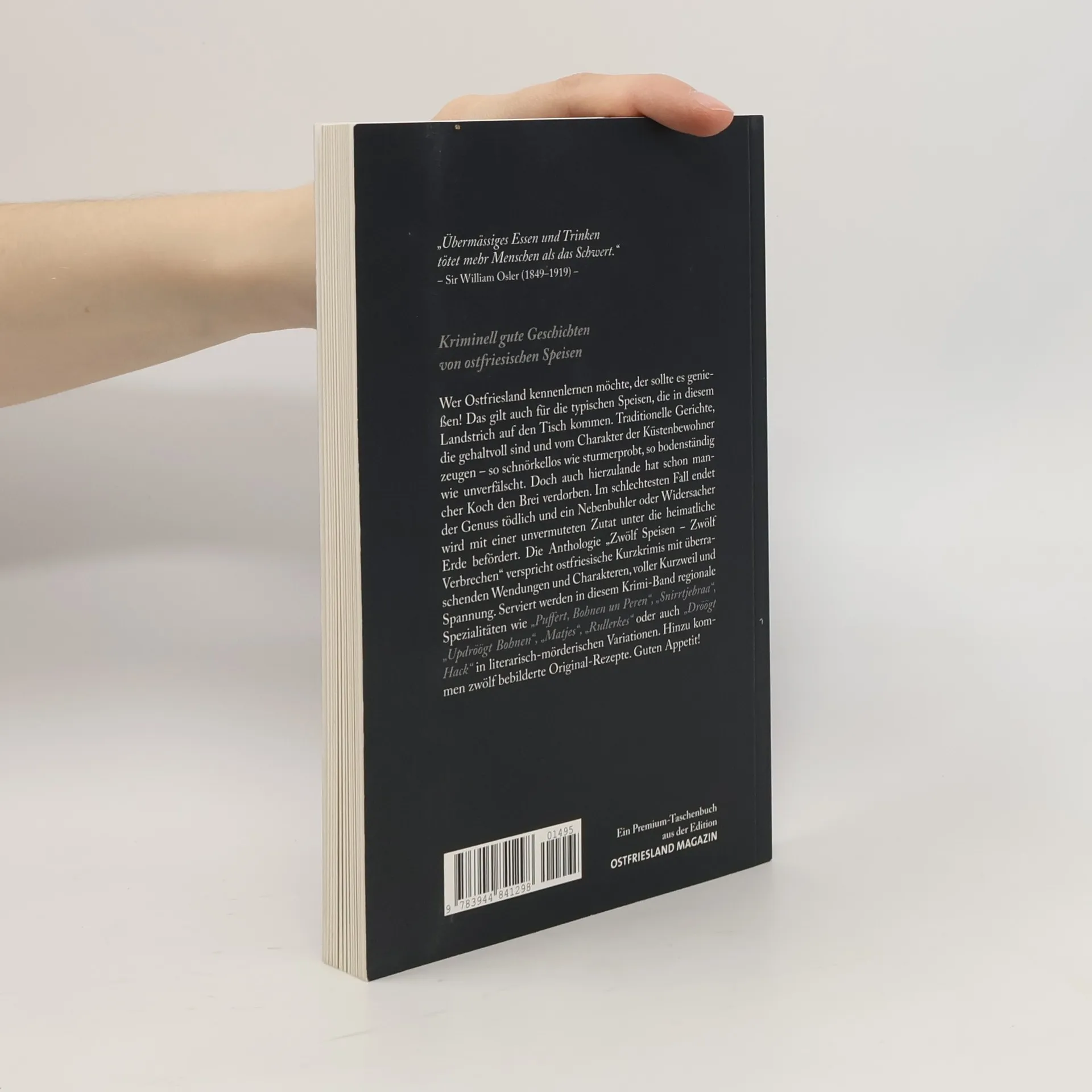 Wie bei den vorangegangen Krimi-Anthologien aus dieser Reihe entdecken Sie zwölf Gerichte typisch für Ostfriesland, und für sich sicherlich bekömmlich; aber auch zwölf Verbrechen, bei denen das Gericht eine ganz neue Rolle zugesprochen bekommt.