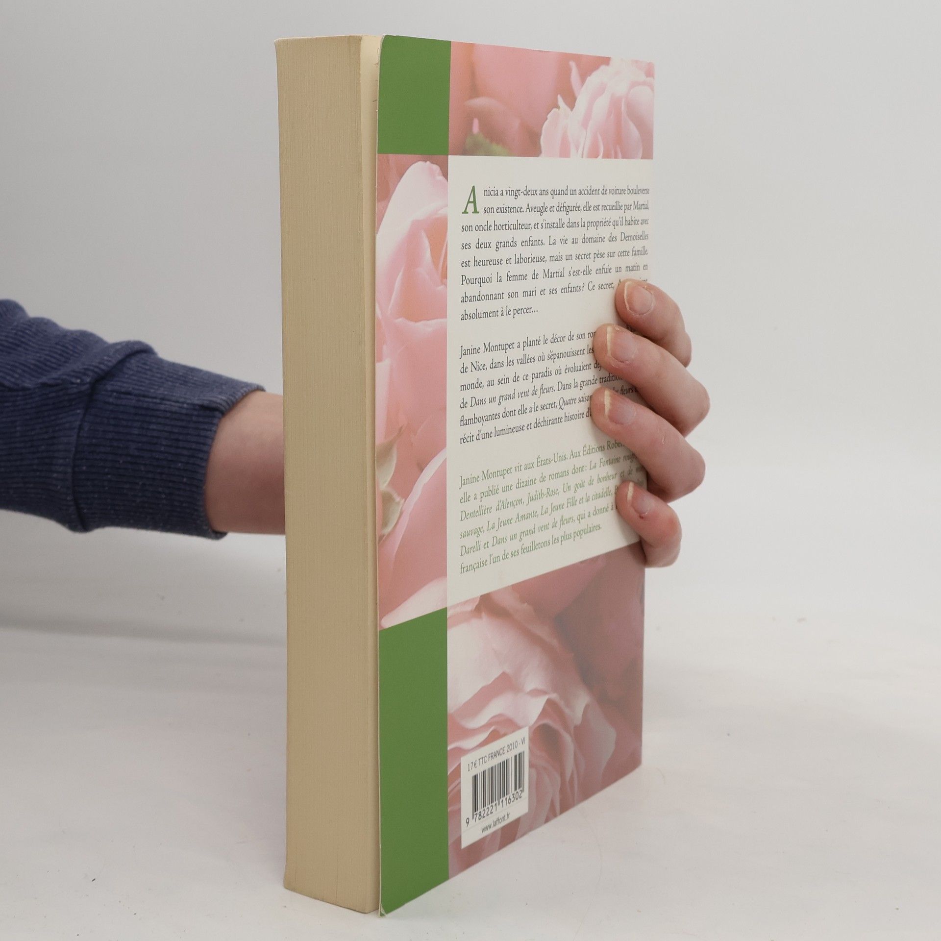 Anicia a vingt-deux ans quand un accident de voiture bouleverse son existence. Aveugle et défigurée, elle est recueillie par Martial, son oncle horticulteur, et s'installe dans la propriété qu'il habite avec ses deux grands enfants. La vie au domaine des Demoiselles est heureuse et laborieuse, mais un secret pèse sur cette famille. Pourquoi la femme de Martial s'est-elle enfuie un matin en abandonnant son mari et ses enfants ? Ce secret, Anicia tient absolument à le percer... Janine Montupet a planté le décor de son roman sur les hauteurs de Nice, dans les vallées où s'épanouissent les plus belles fleurs du monde, au sein de ce paradis où évoluaient déjà les personnages de Dans un grand vent de fleurs. Dans la grande tradition des sagas flamboyantes dont elle a le secret, Quatre saisons parmi les fleurs est le récit d'une lumineuse et déchirante histoire d'amour.