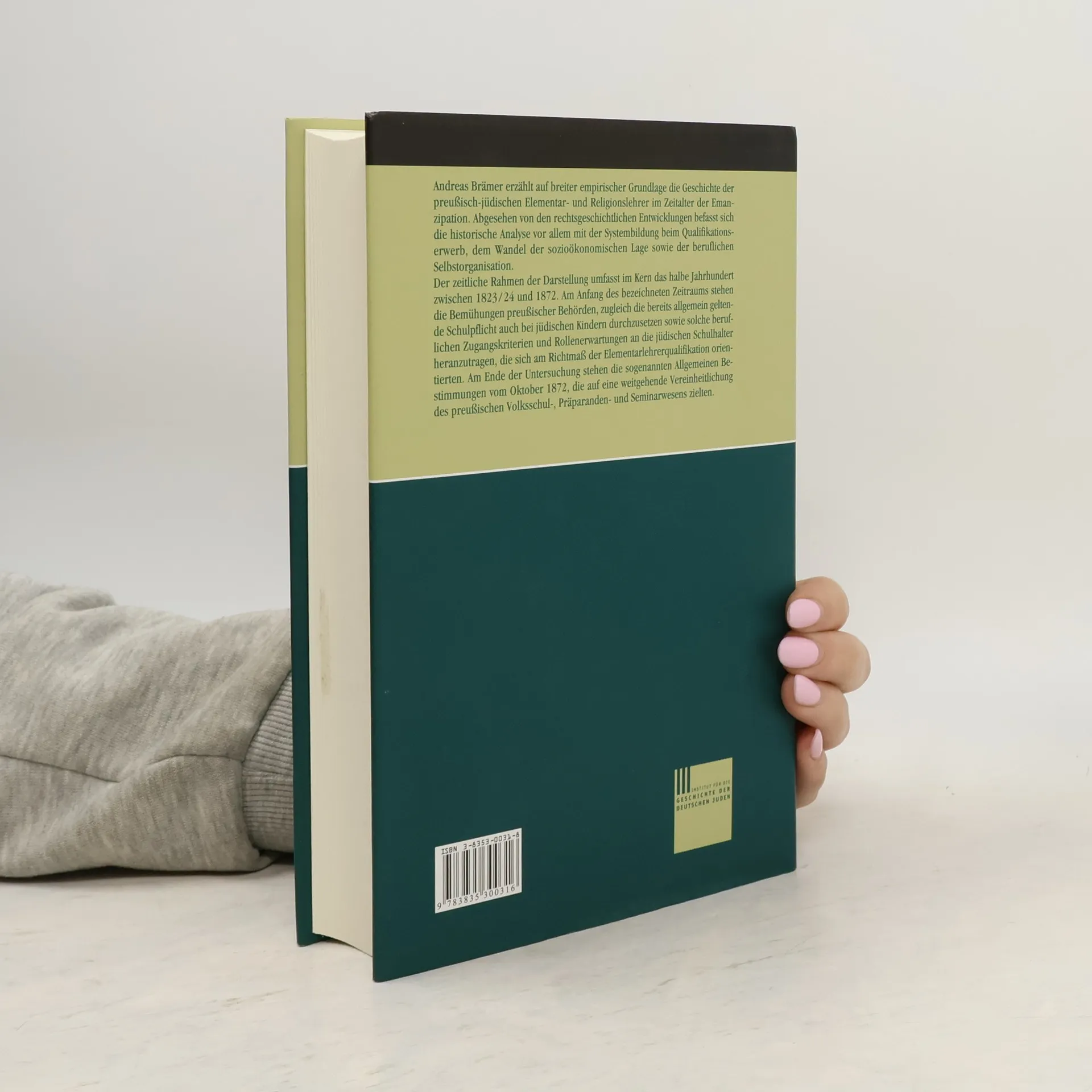 Auf breiter empirischer Grundlage wird die Geschichte der preußisch-jüdischen Elementar- und Religionslehrer im Zeitalter der Emanzipation erzählt. Preußisch-jüdische Religions- und Elementarlehrer leisteten einen wichtigen Beitrag zum Projekt der Verbürgerlichung. Dieses Buch widmet sich dieser Berufsgruppe in einer radikalen Umbruchphase des jüdischen Schulwesens. Abgesehen von den rechtsgeschichtlichen Entwicklungen befaßt sich die historische Analyse vor allem mit der Systembildung beim Qualifikationserwerb, dem Wandel der sozio-ökonomischen Lage sowie der beruflichen Selbstorganisation. Der zeitliche Rahmen der Darstellung umfaßt im Kern das halbe Jahrhundert zwischen 1823/24 und 1872. Am Anfang stehen die Bemühungen preußischer Behörden, die bereits allgemein geltende Schulpflicht auch bei jüdischen Kindern durchzusetzen sowie solche beruflichen Zugangskriterien und Rollenerwartungen an die jüdischen Schulhalter heranzutragen, die sich am Richtmaß der Elementarlehrerqualifikation orientierten. Am Ende der Untersuchung stehen die sogenannten Allgemeinen Bestimmungen vom Oktober 1872, die auf eine weitgehende Vereinheitlichung des preußischen Volksschul-, Präparanden- und Seminarwesens zielten. Inhaltsverzeichnis