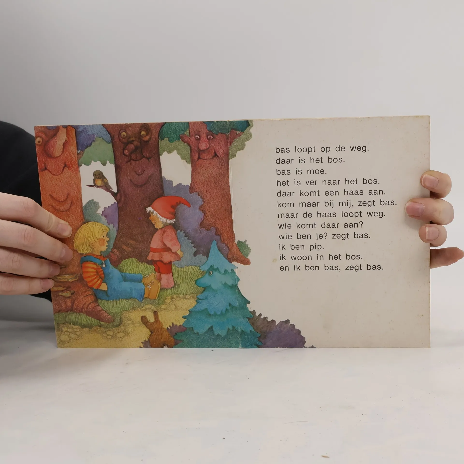 Bas gaat naar het bos. Hij ziet daar kabouter Pip en een reus. Hij is bang voor de reus en loopt snel naar huis.