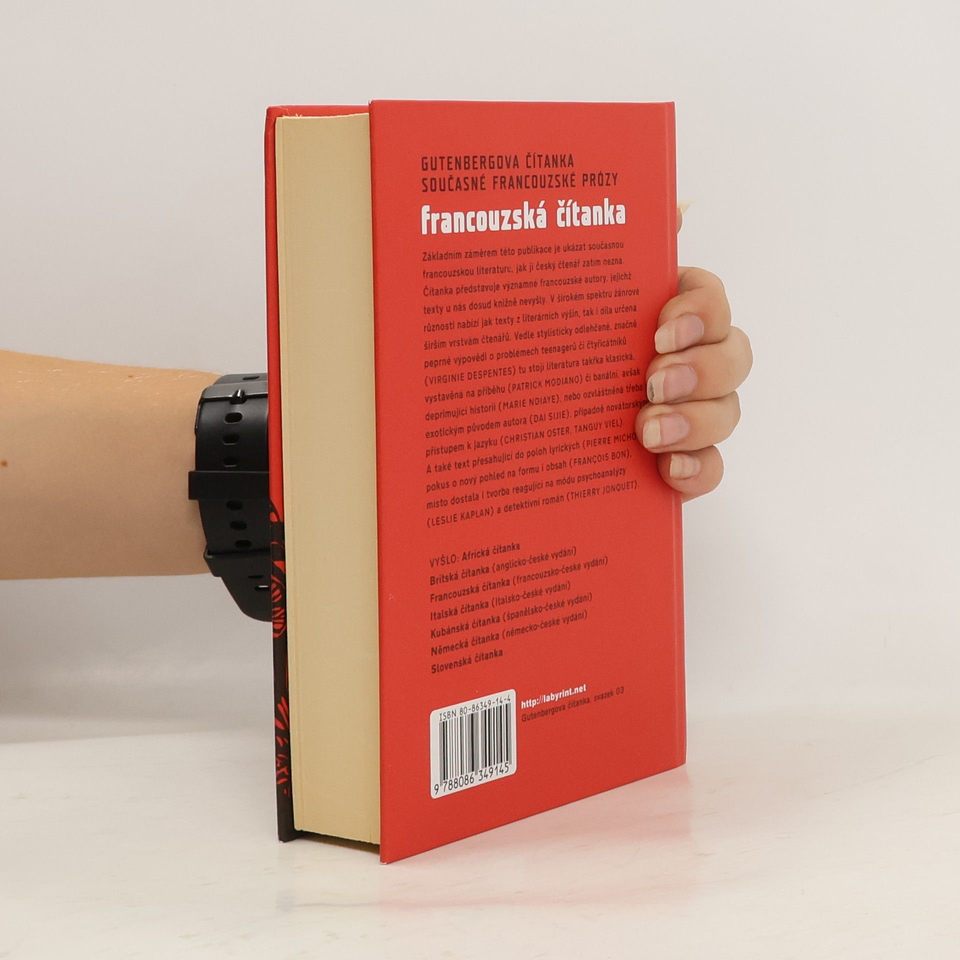 Gutenbergova čítanka současné francouzské prózy. Hlavním záměrem dvojjazyčné publikace je představit rozpětí současné francouzské prózy především ukázkami z děl významných, dosud u nás nepřeložených autorů. Výběr zahrnuje ukázky z díla deseti osobností, jak mladých, tak i známých autorů, jejichž knihy vyšly ve francouzštině v časovém rozmezí let 1994-2004. Editoři se snažili obsáhnout široké spektrum žánrové různorodosti současné francouzské tvorby a tak je v antologii kromě literatury náročné a téměř klasické zastoupena i próza zábavná a oddechová. Publikace, která samozřejmě nemůže být vyčerpávajícím přehledem, je doplněna medailony autorů, medailony překladatelů, bibliografií a komentářem. 1. vyd.