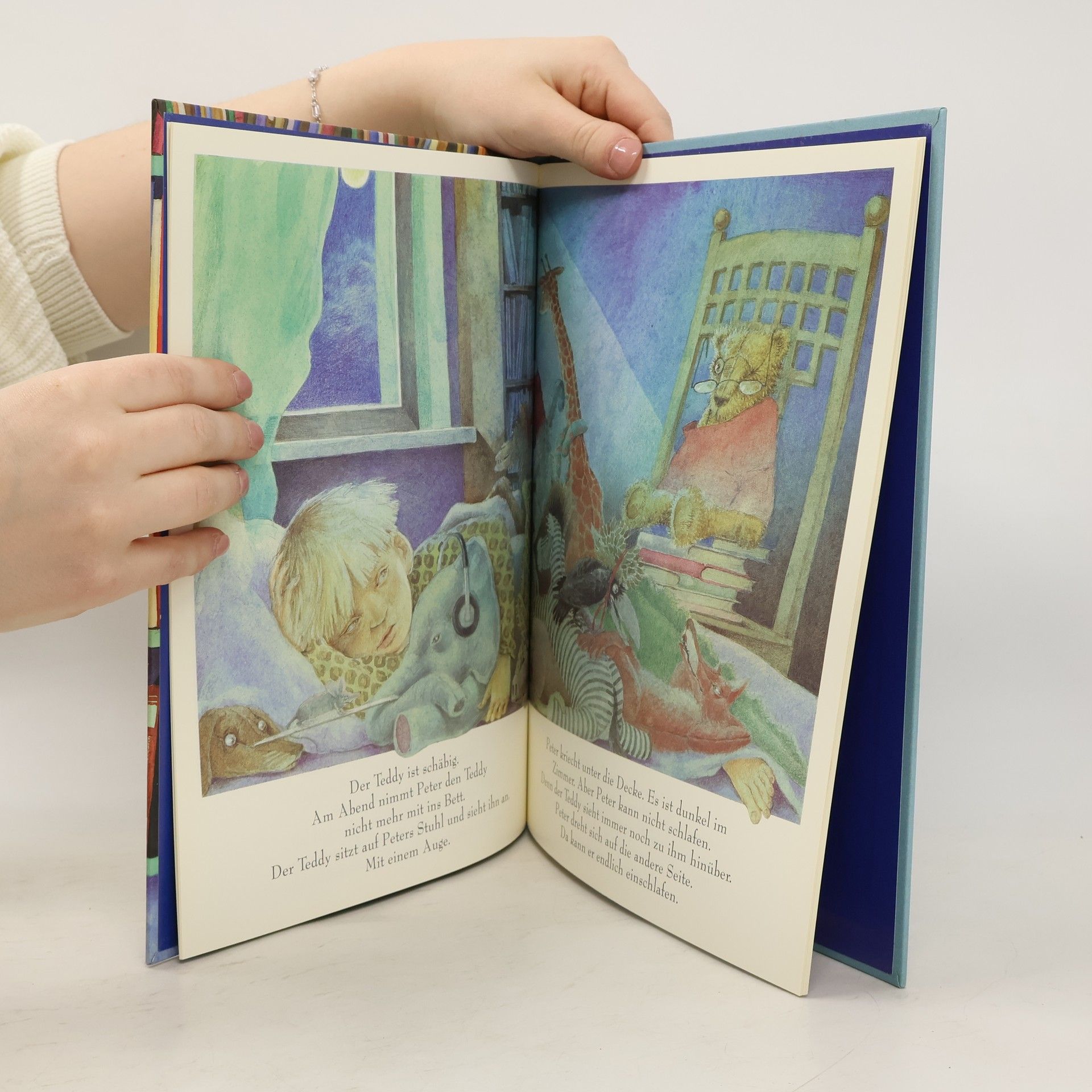 Peter hat so viele Kuscheltiere, dass er selbst kaum noch Platz in seinem Bett hat. Um Platz für den neuen Elefanten zu schaffen, muss er sich von einem anderen Tier trennen. Da fällt sein Blick auf den alten, abgewetzten Teddy...