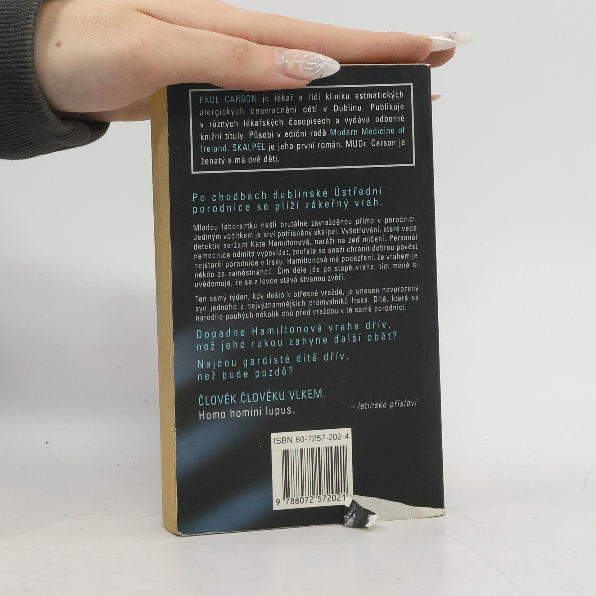 Po chodbách dublinské Ústřední porodnice se plíží zákeřný vrah. Mladou laborantku našli brutálně zavražděnou přímo v porodnici. Jediným vodítkem je krví potřísněný skalpel. Vyšetřování, které vede detektiv seržant Kate Hamiltonová, naráží na zeď mlčení. Personál nemocnice odmítá vypovídat, zoufale se snaží chránit dobrou pověst nejstarší porodnice v Irsku. Hamiltonová má podezření, že vrahem je někdo ze zaměstnanců. Čím déle jde po stopě vraha, tím méně si uvědomuje, že se z lovce stává štvanou zvěří. Ten samý týden, kdy došlo k otřesné vraždě, je unesen novorozený syn jednoho z nejvýznamnějších průmyslníků Irska. Dítě, které se narodilo pouhých několik dnů před vraždou v té samé porodnici. Dopadne Hamiltonová vraha dřív, než jeho rukou zahyne další oběť? Najdou gardisté dítě dřív, než bude pozdě?